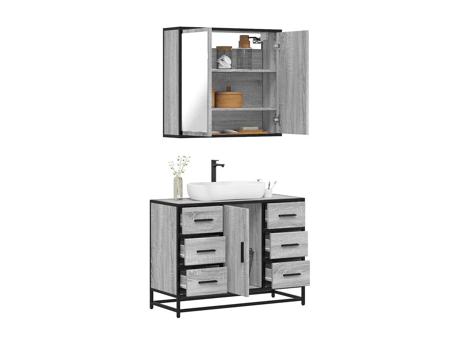 Ensemble de meubles de salle de bain 2 pcs Sonoma gris