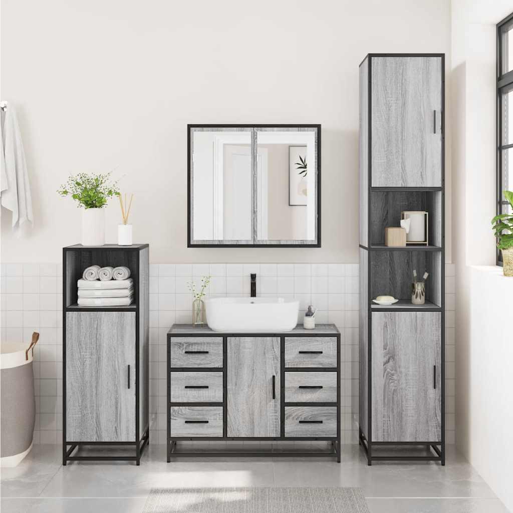 Ensemble de meubles de salle de bain 4 pcs sonoma gris