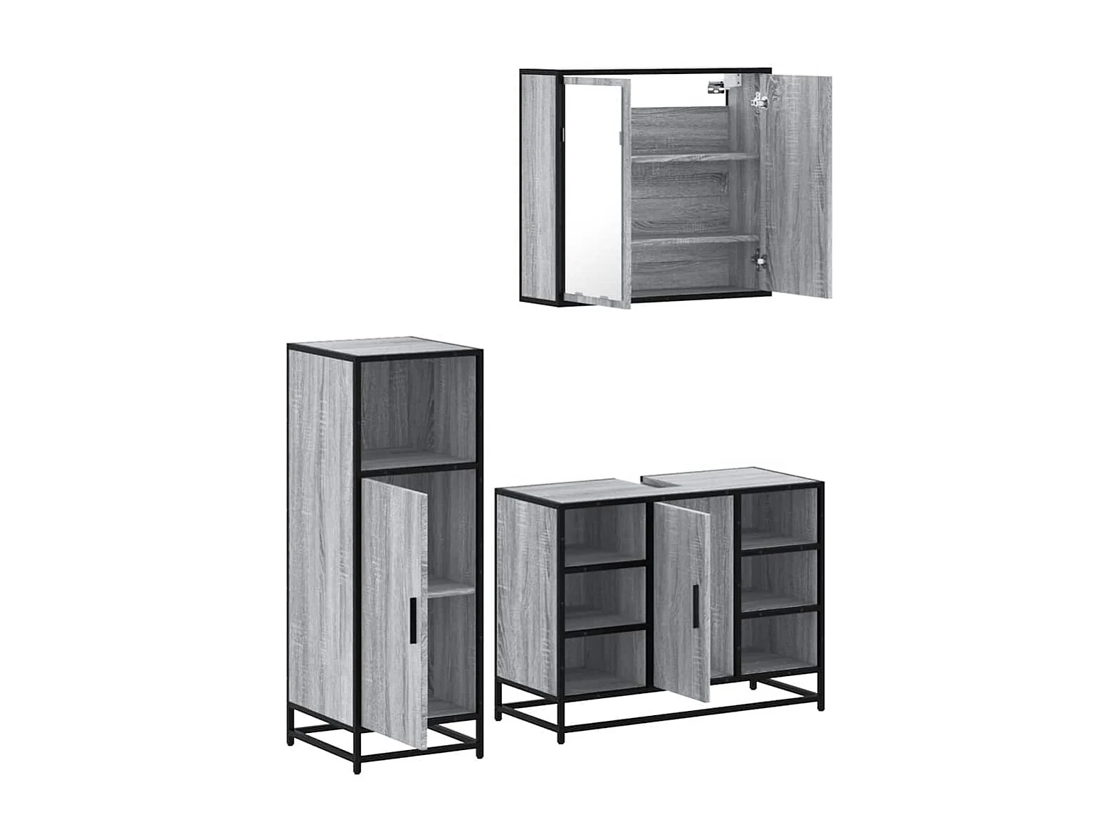 Ensemble de meubles de salle de bain 3 pcs Sonoma gris