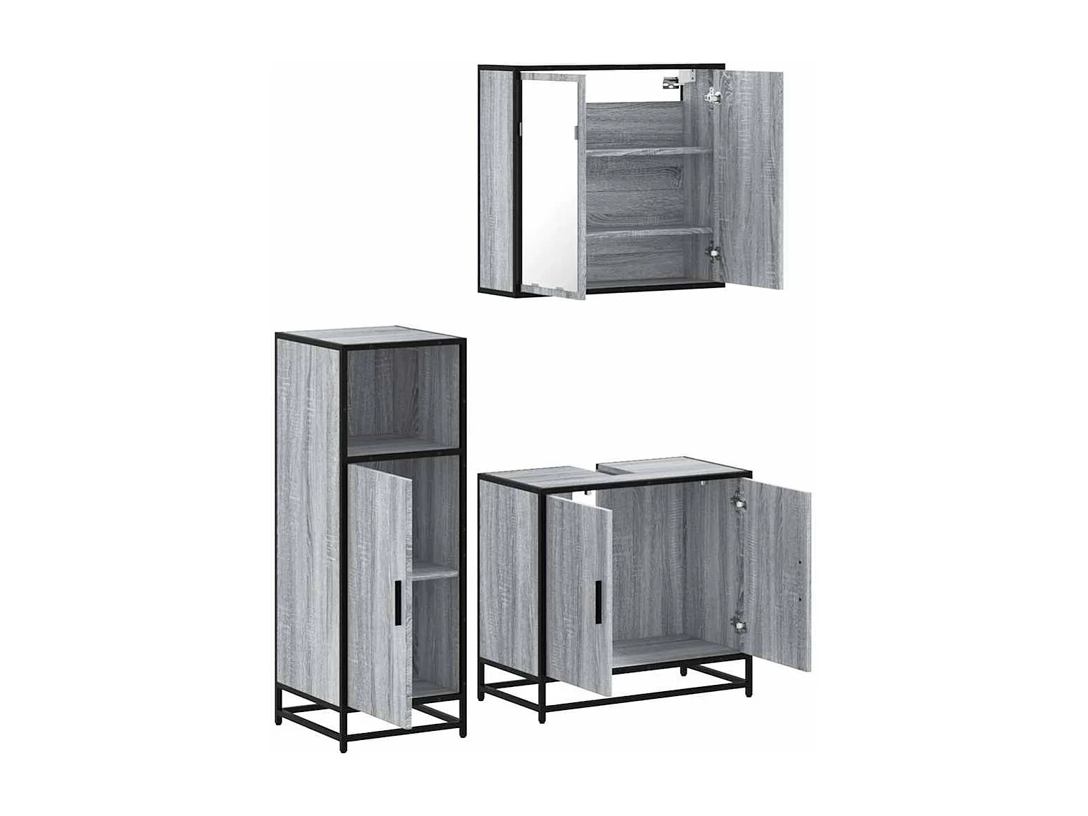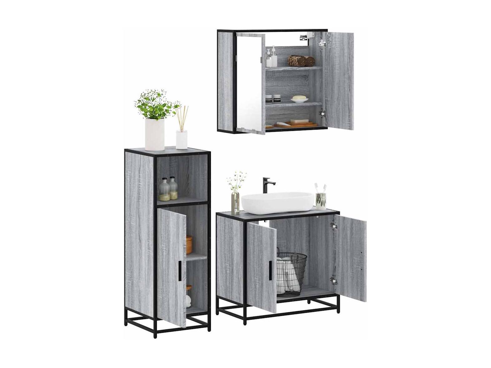 Ensemble de meubles de salle de bain 3 pcs Sonoma gris
