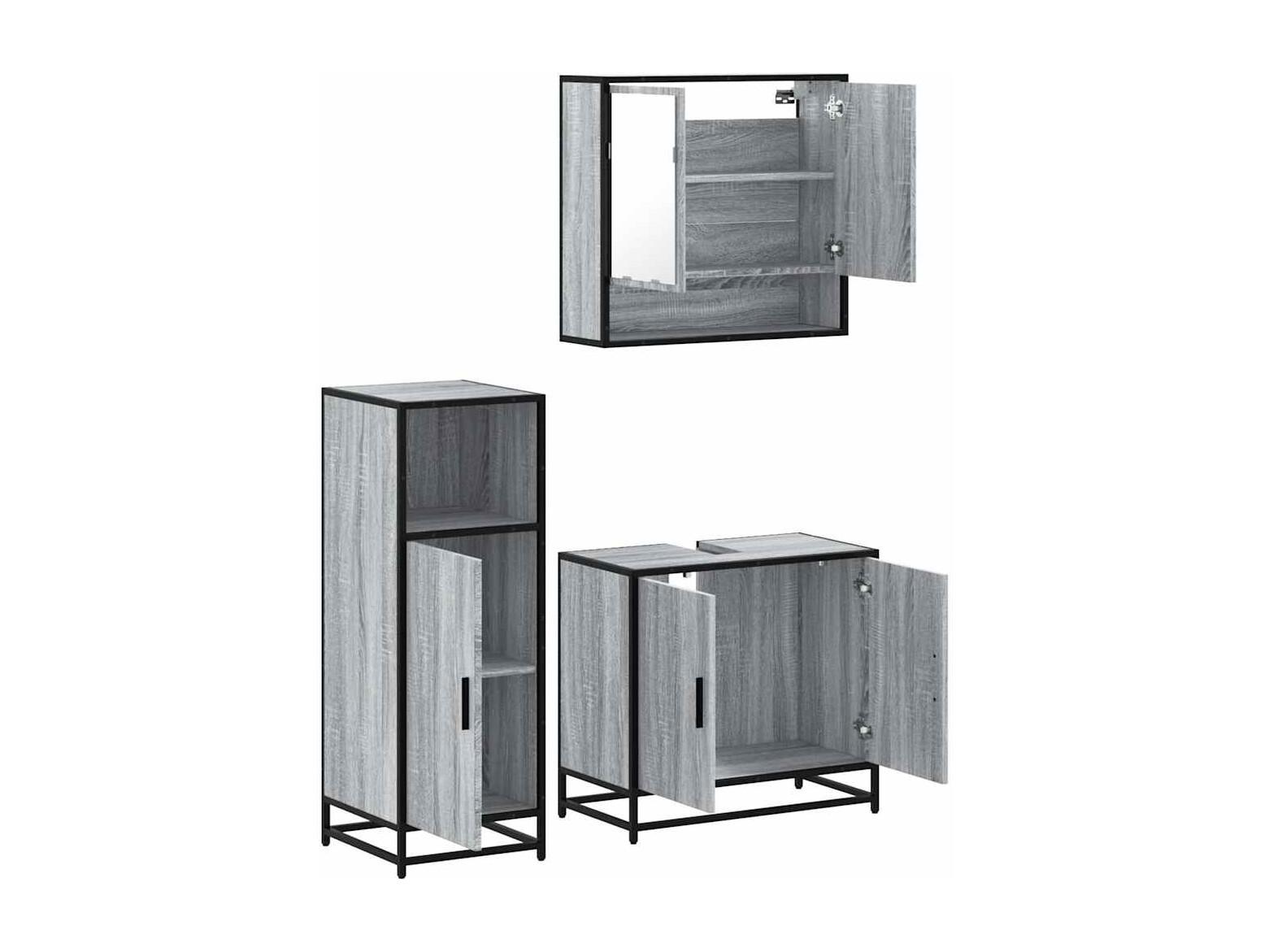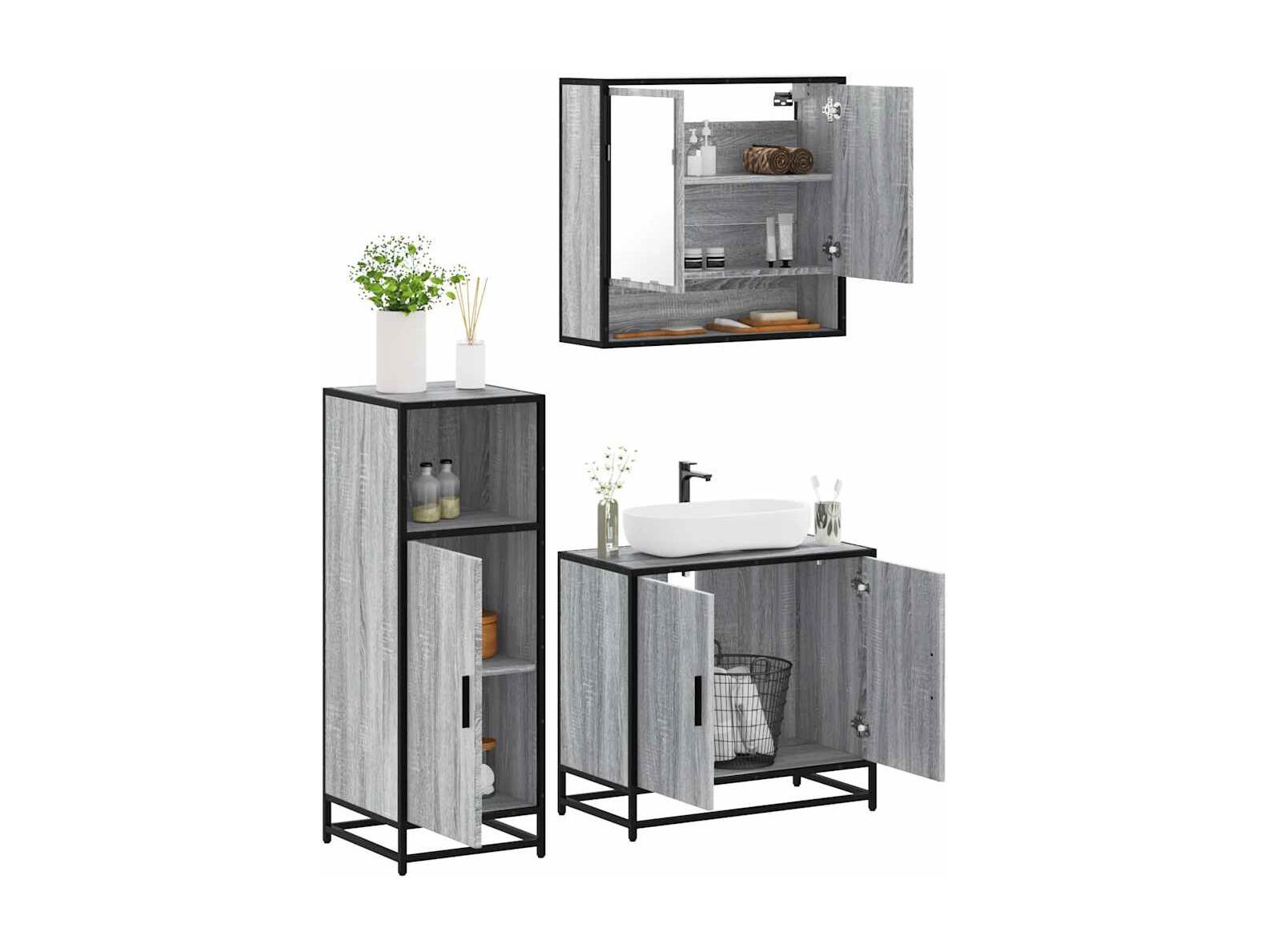 Ensemble de meubles de salle de bain 3 pcs Sonoma gris