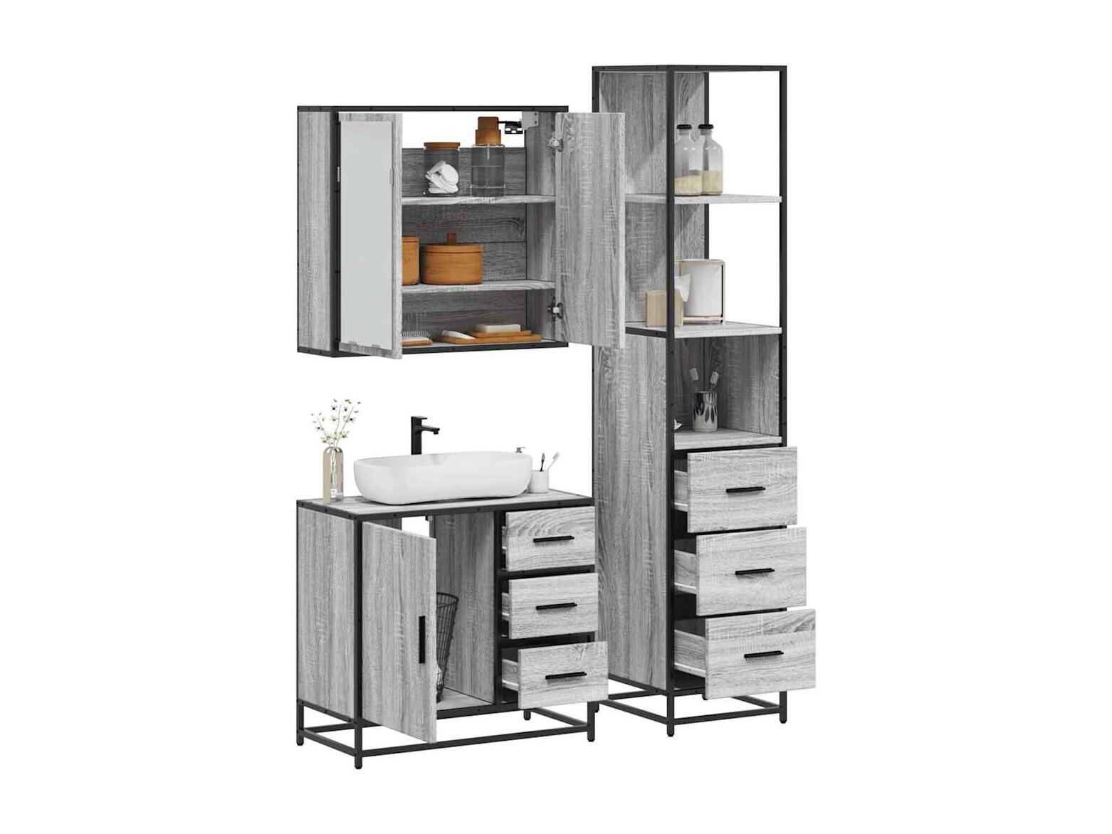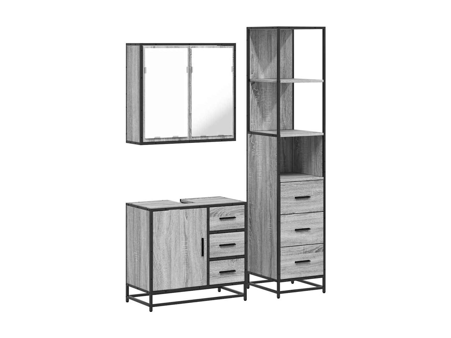 Ensemble de meubles de salle de bain 3 pcs Sonoma gris