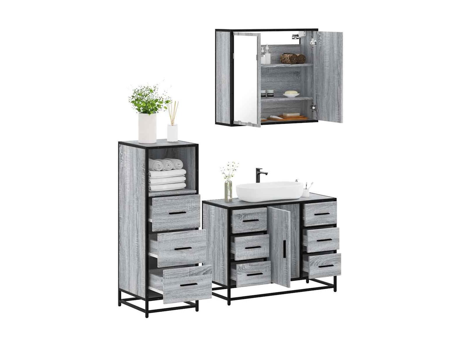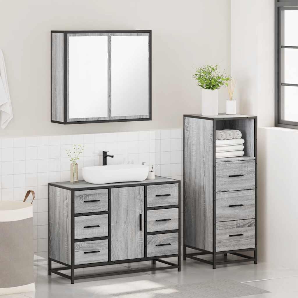 Ensemble de meubles de salle de bain 3 pcs Sonoma gris