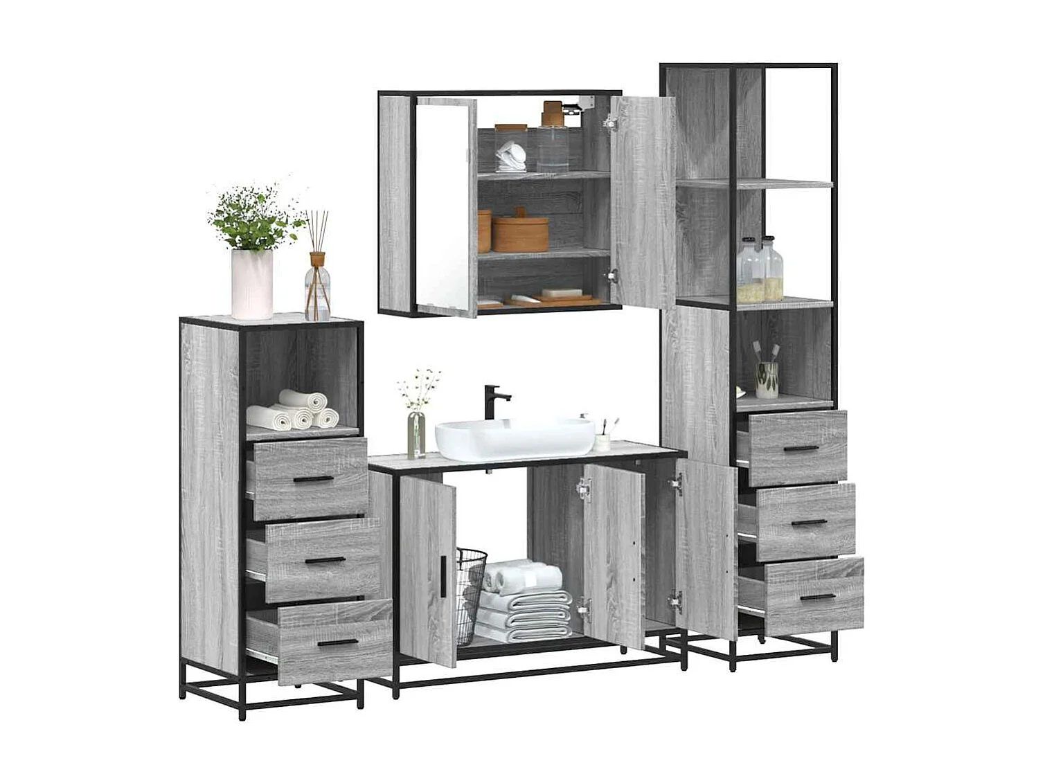 Ensemble de meubles de salle de bain 4 pcs sonoma gris