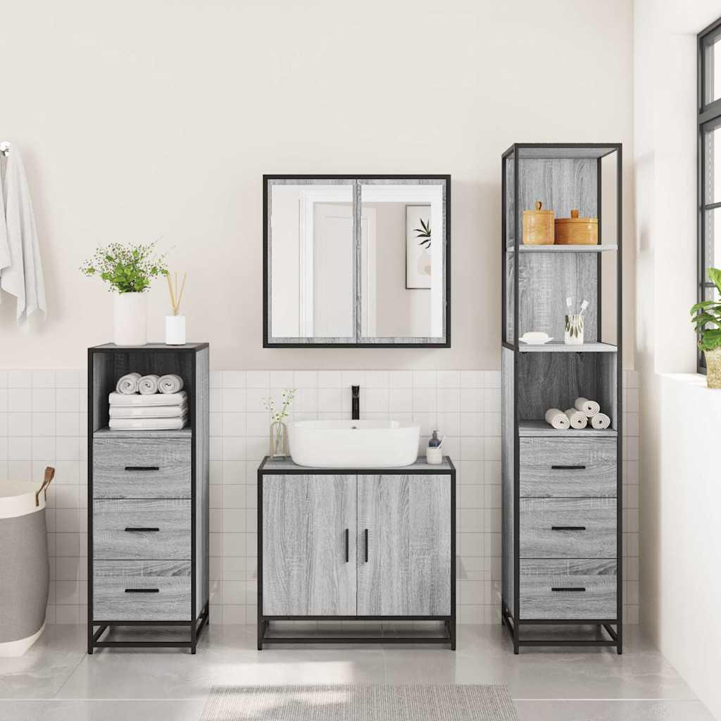 Ensemble de meubles de salle de bain 3 pcs Sonoma gris
