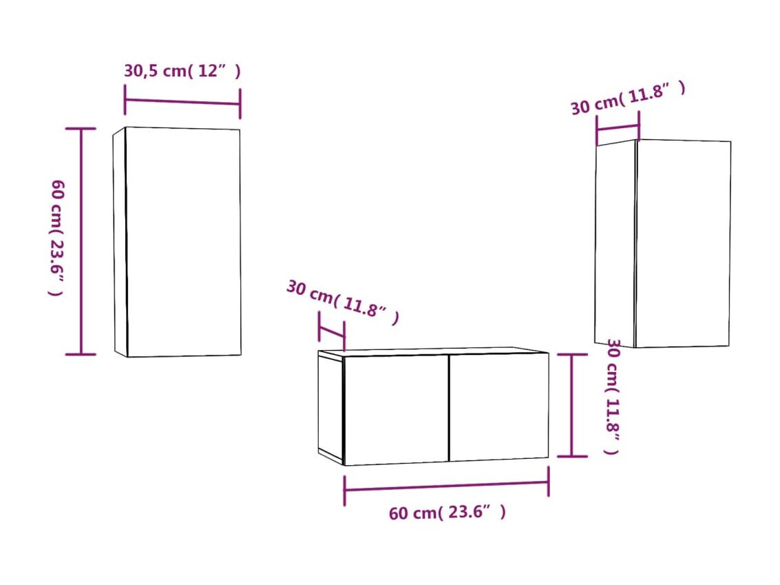 Meubles TV 4 pcs Chêne sonoma 60x30x30 cm Bois d'ingénierie