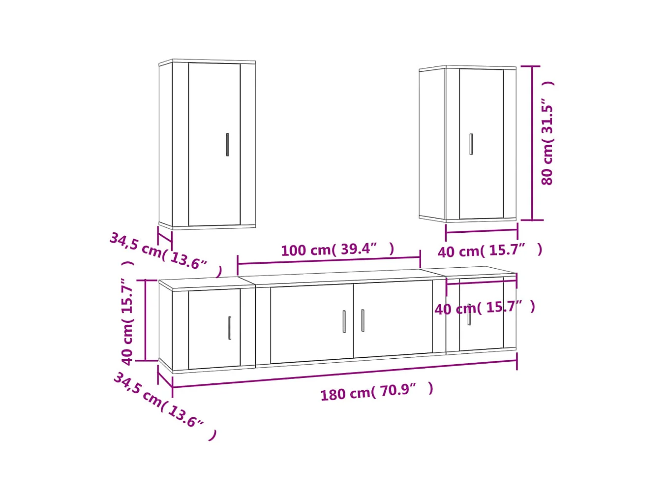 Ensemble de meubles TV 5 pcs Chêne fumé Bois d'ingénierie