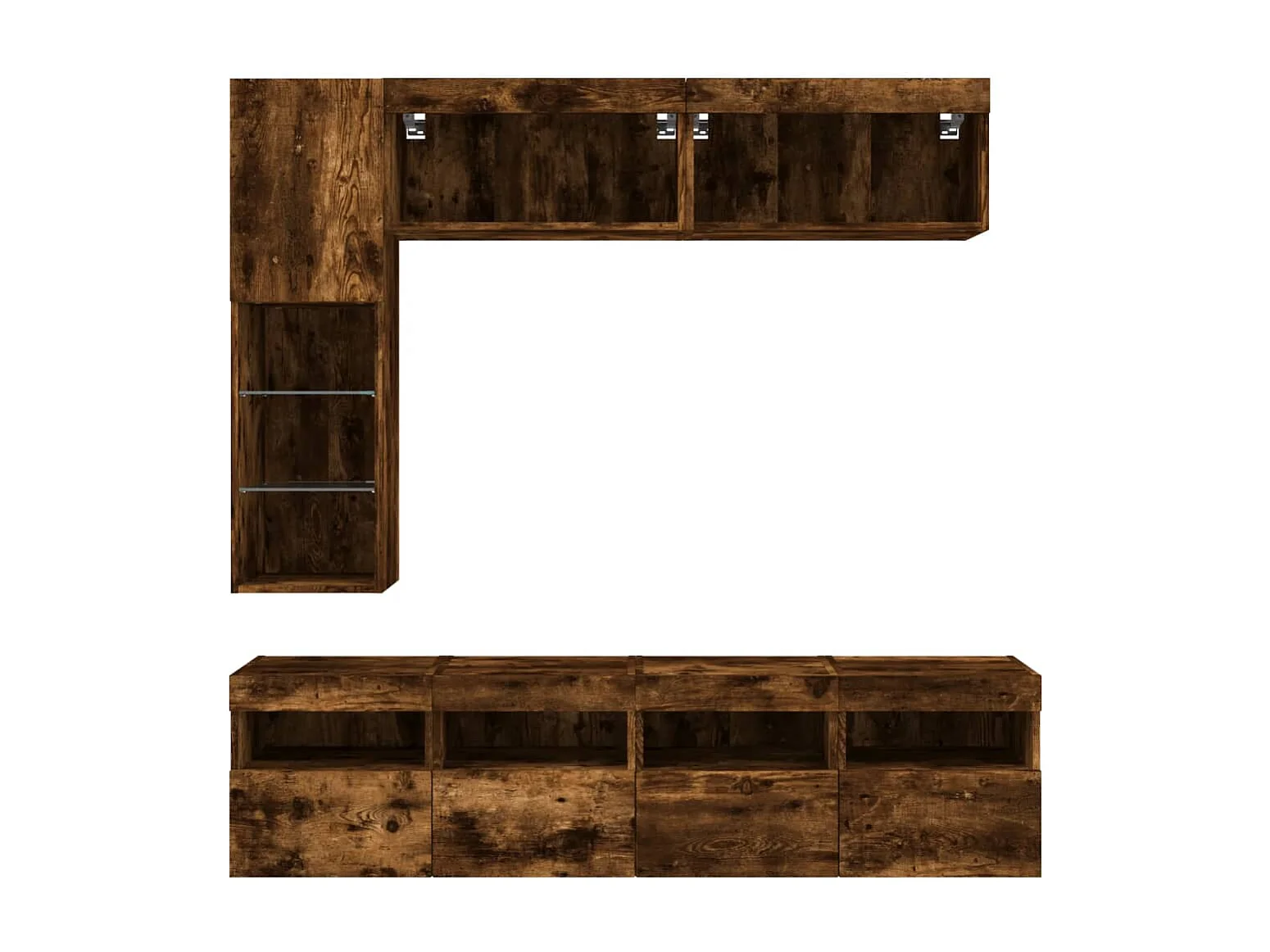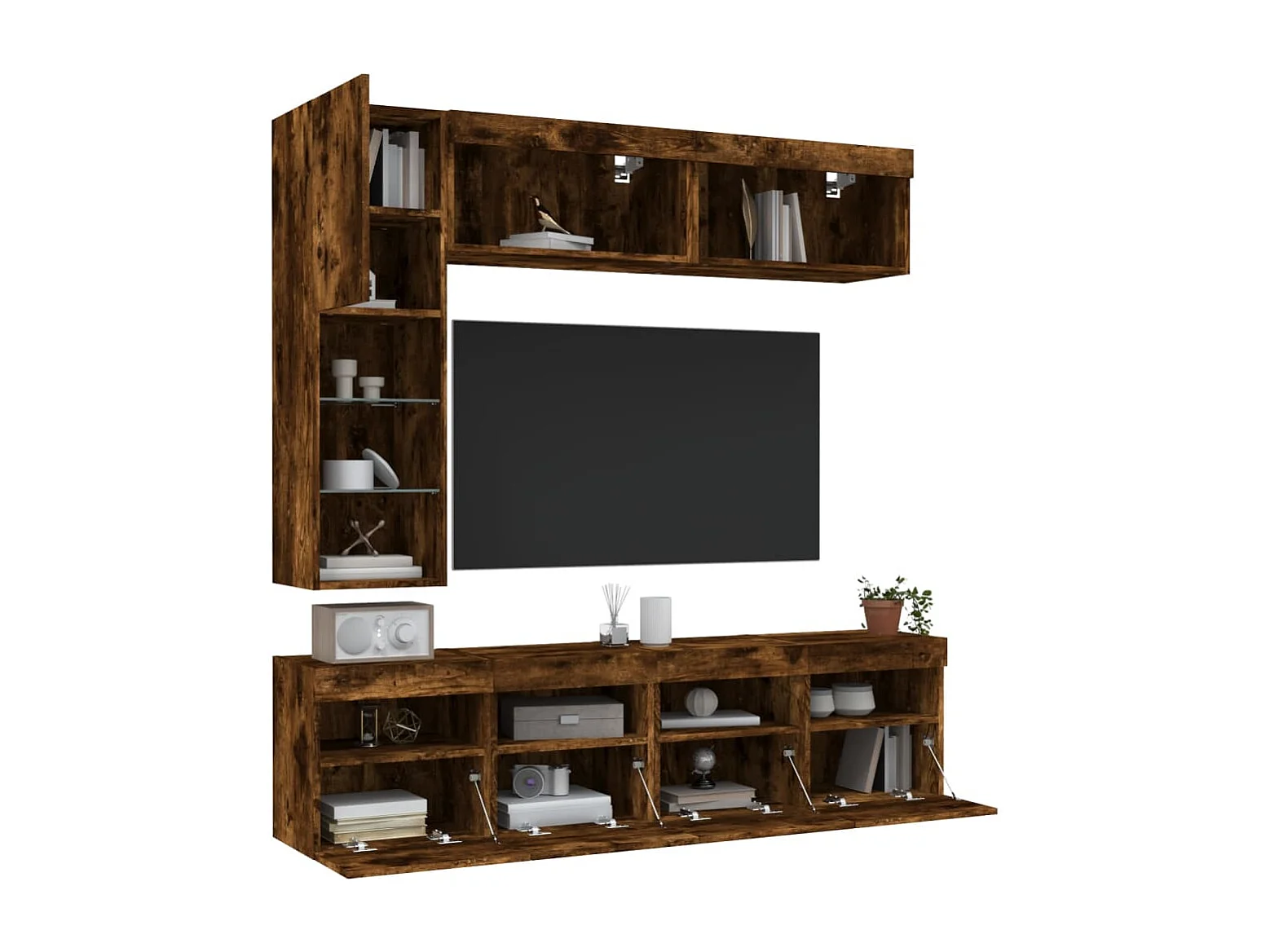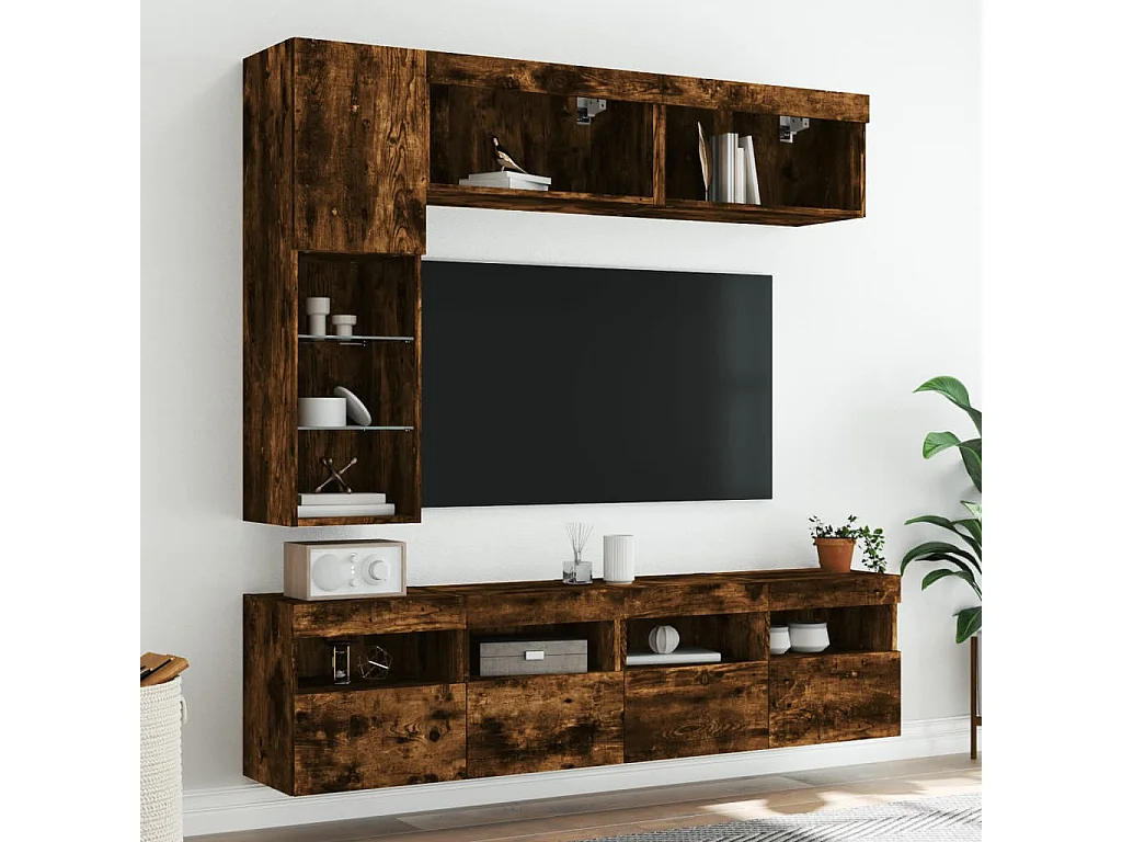Ensemble de meubles TV muraux 7 pcs et lumières LED chêne fumé