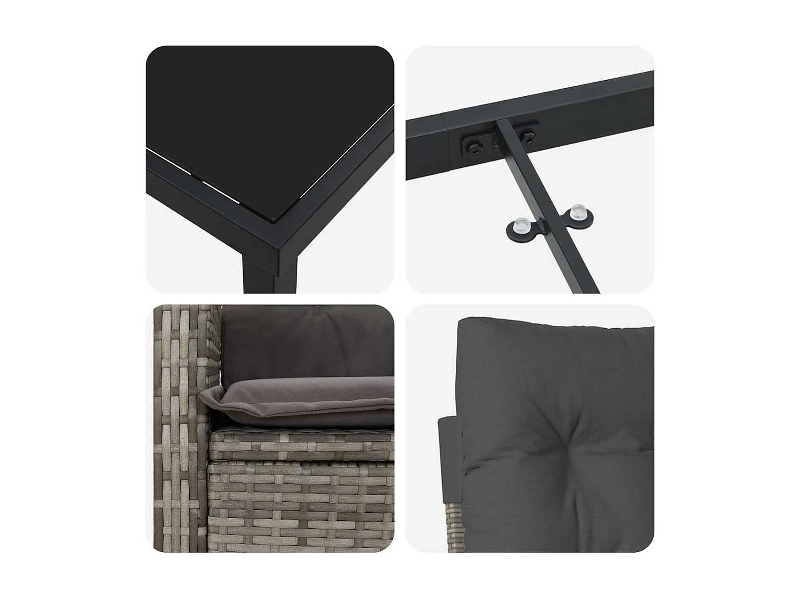 Table de jardin avec plateau en verre noir 55 x 55 x 37 cm en résine tressée
