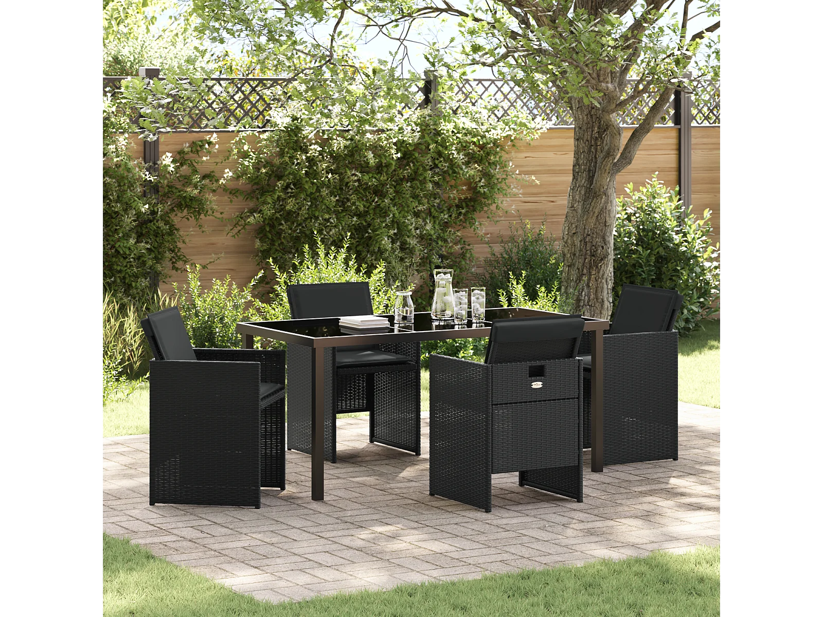 Ensemble de repas de jardin 5 pièces avec coussins en Rattan Poly noir