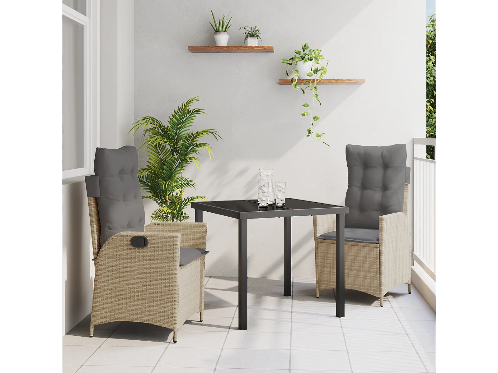 Ensemble de repas de jardin 3 pièces en poly rattan beige