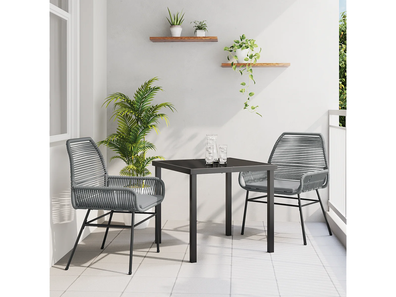 Ensemble de salle à manger de jardin 3 pièces avec coussins en rattan poly gris