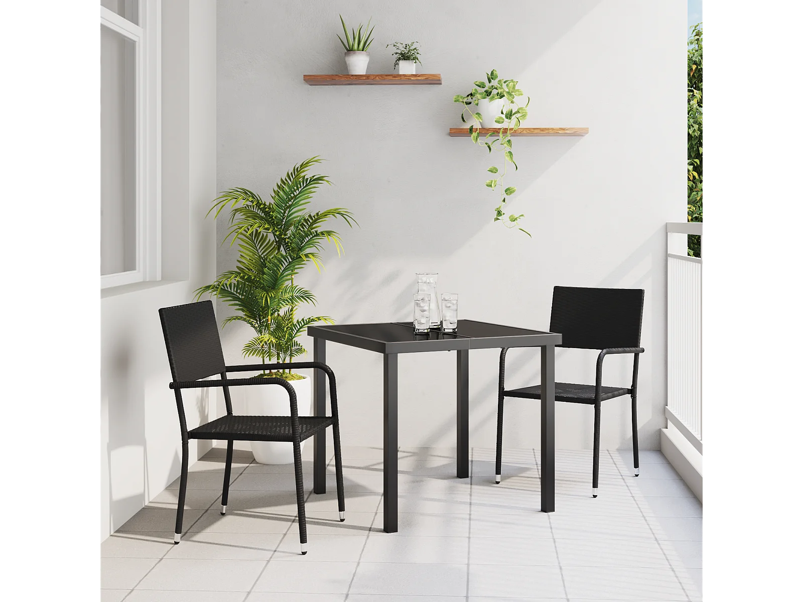 Ensemble de salle à manger de jardin 3 pièces en rattan poly noir