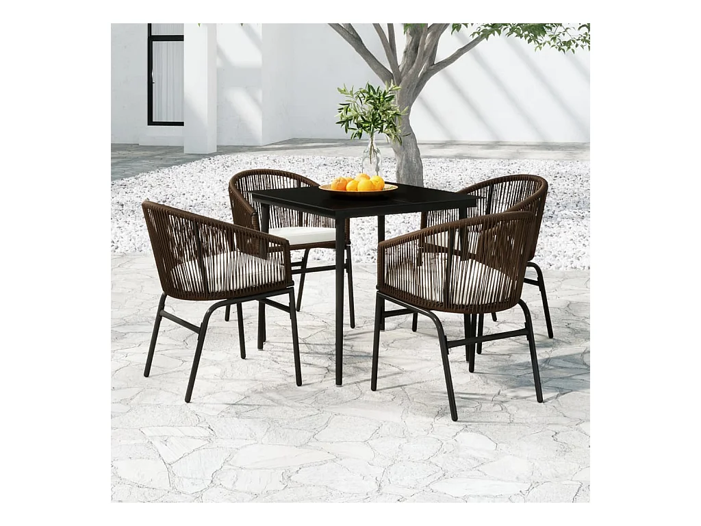 Ensemble à manger de jardin 5pcs Résine tressée Marron