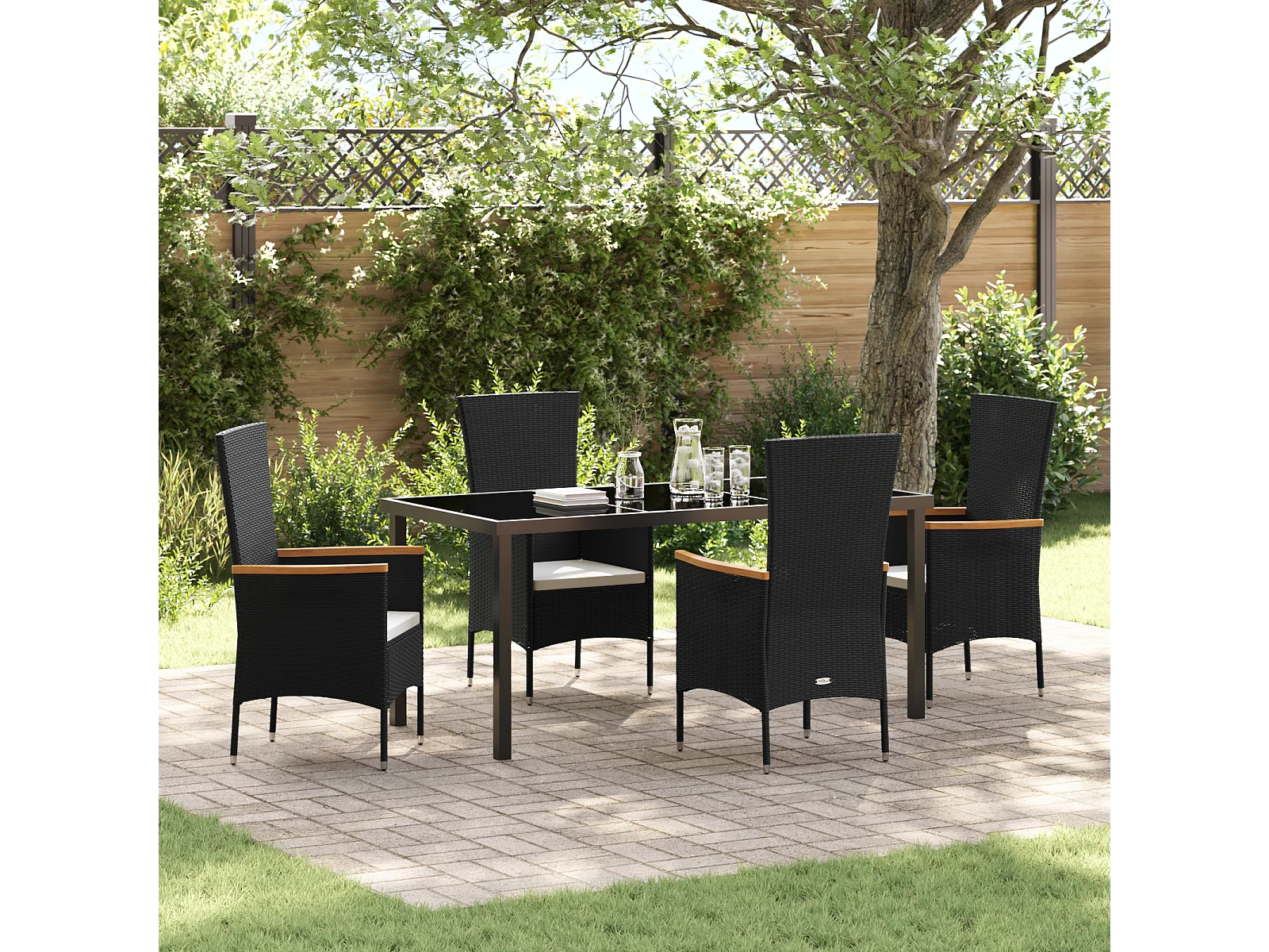 Ensemble de dining de jardin 5 pièces avec coussins Noir Rattan poly