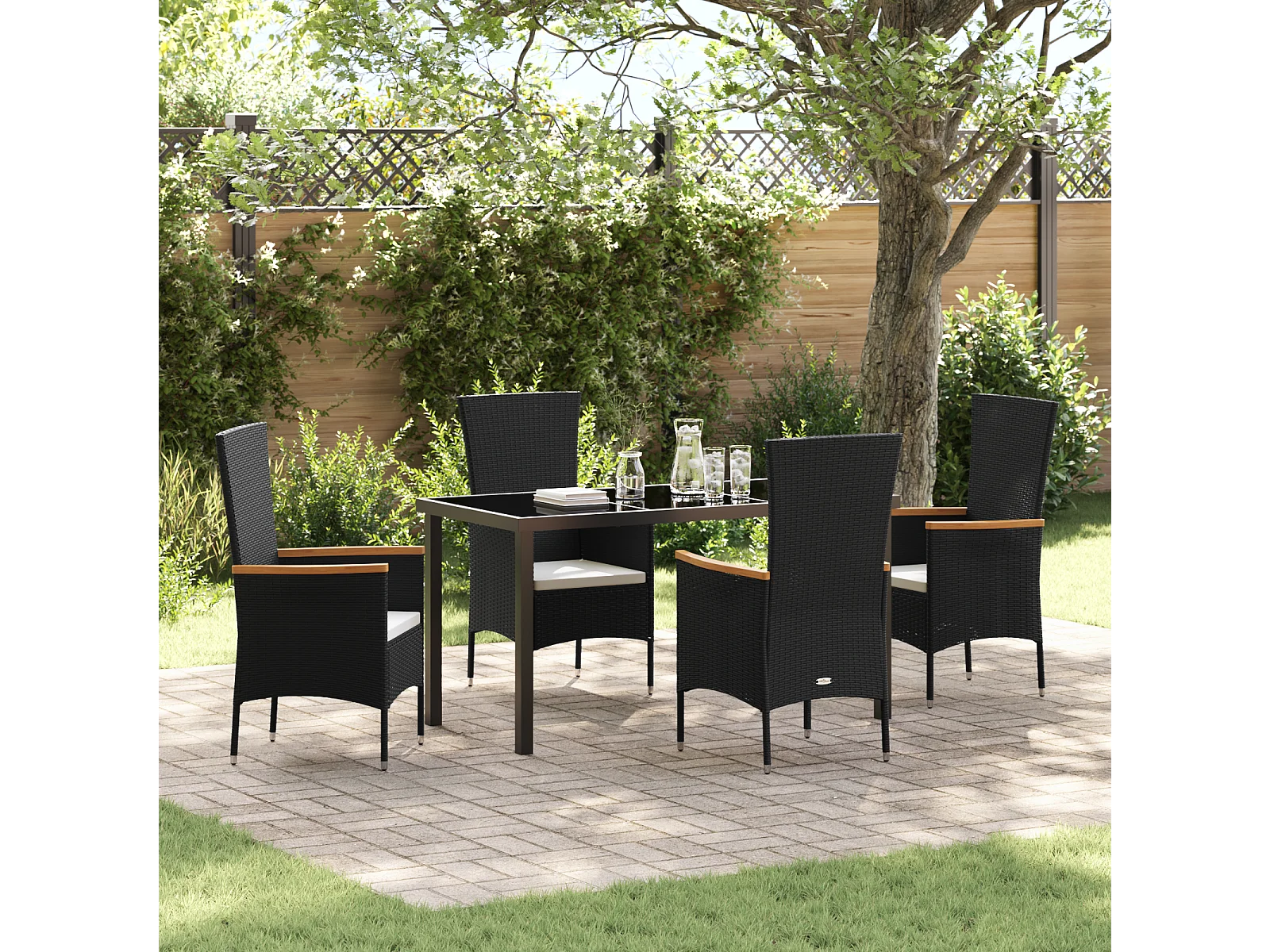 Ensemble de salle à manger de jardin 5 pièces avec coussins en rattan poly noir