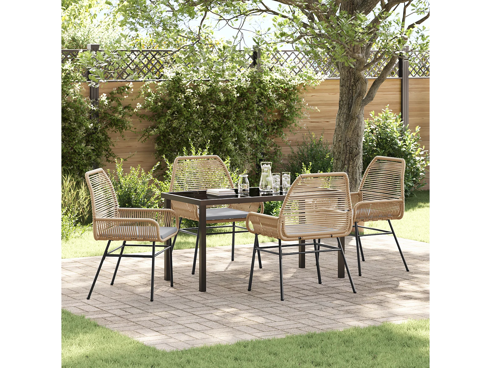 Ensemble de repas de jardin 5 pièces avec coussins marron en rotin poly