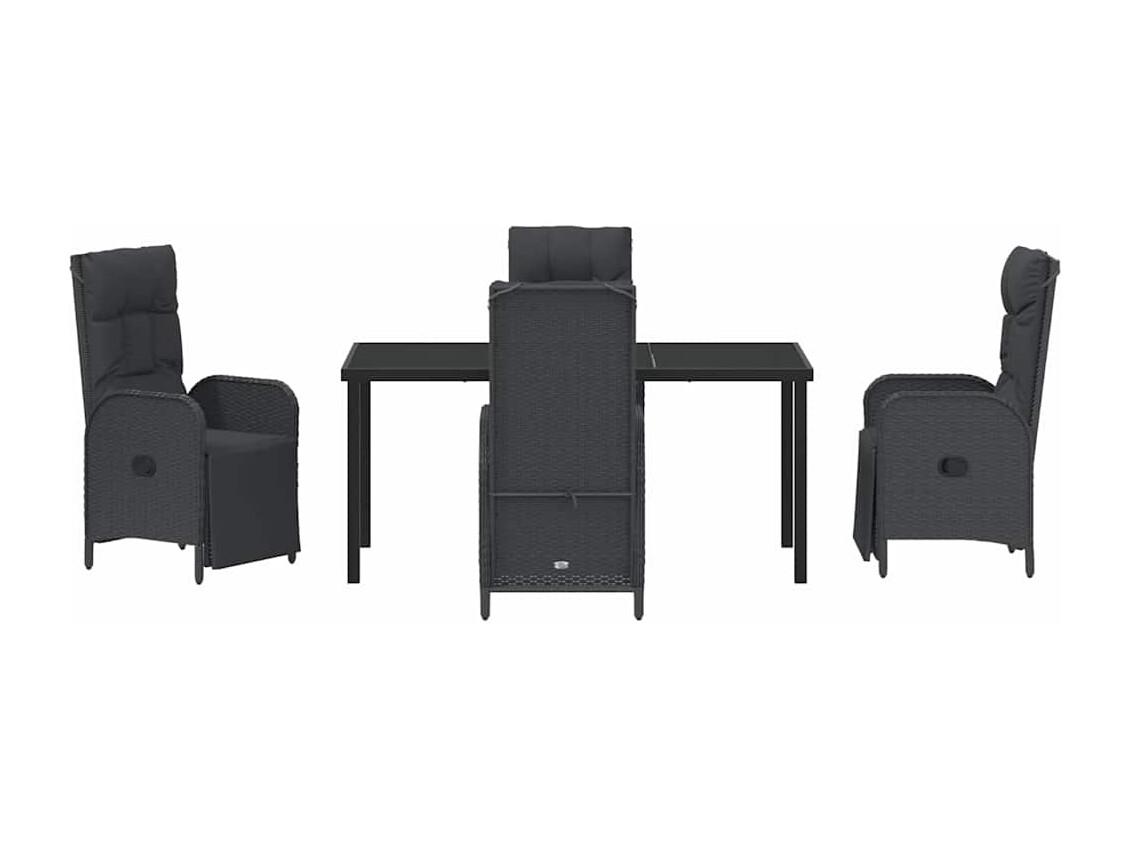 Ensemble de salle à manger de jardin 5 pièces avec coussins Noir Poly Rattan