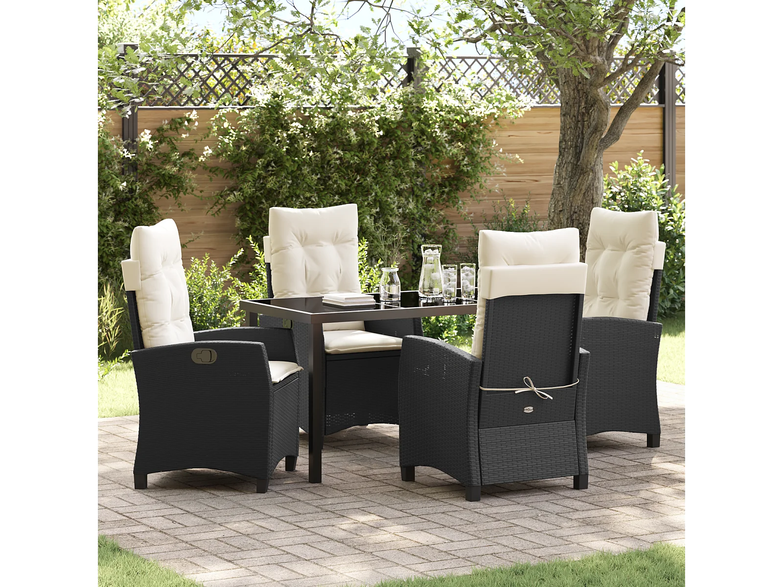 Ensemble de dining de jardin 5 pièces avec coussins Noir Rattan poly