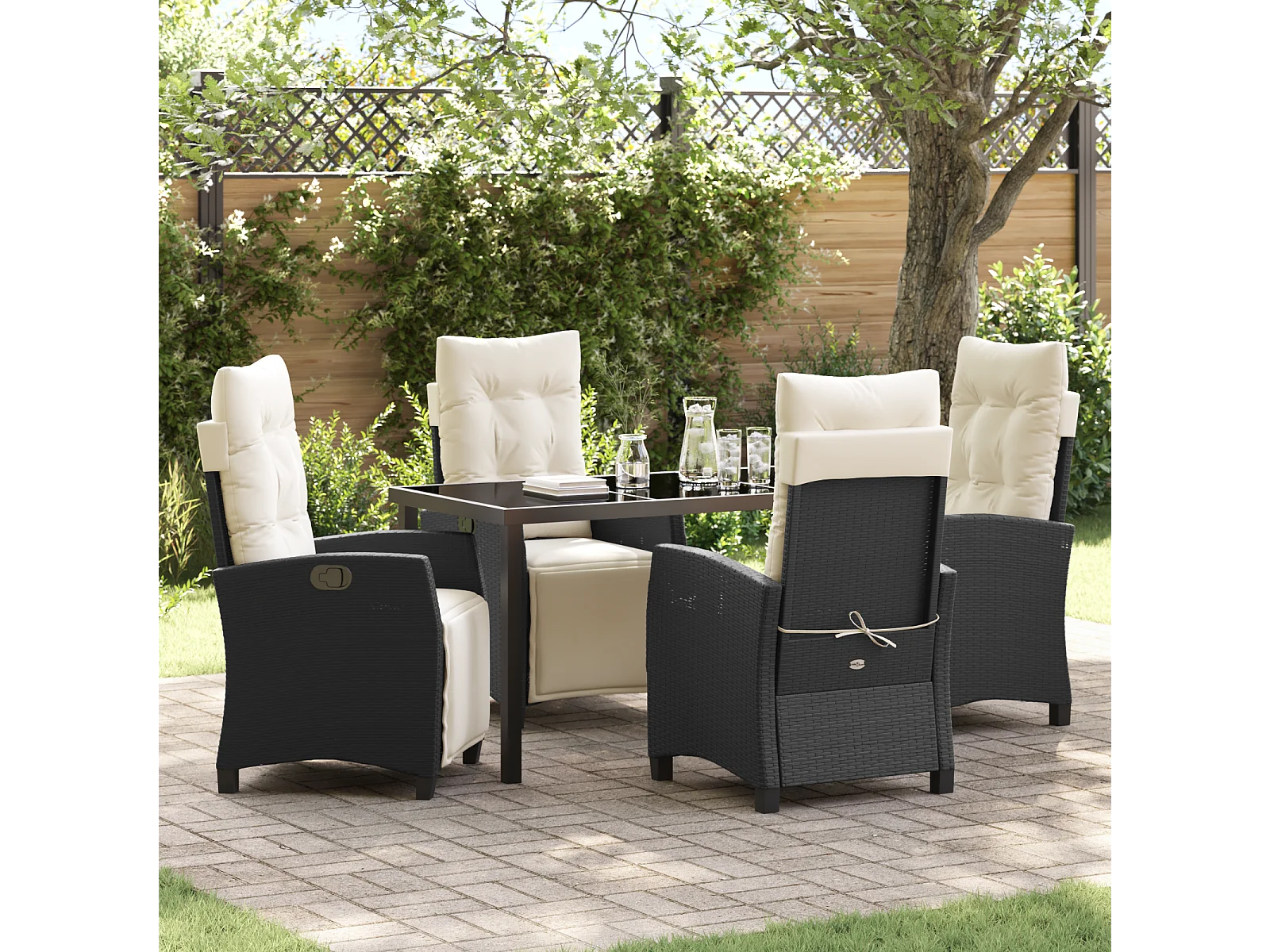 Ensemble de dining de jardin 5 pièces avec coussins Noir Rattan poly
