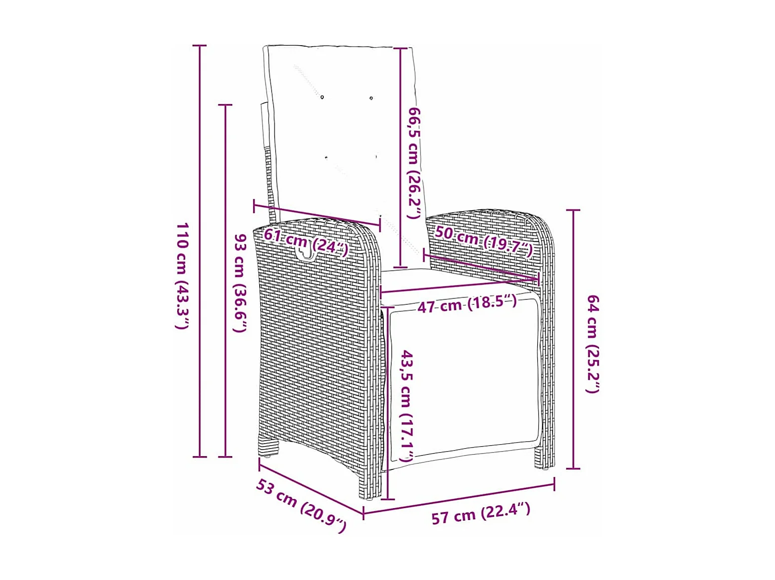 Set de dîner de jardin de 3 pièces avec coussins en rattan noir poly