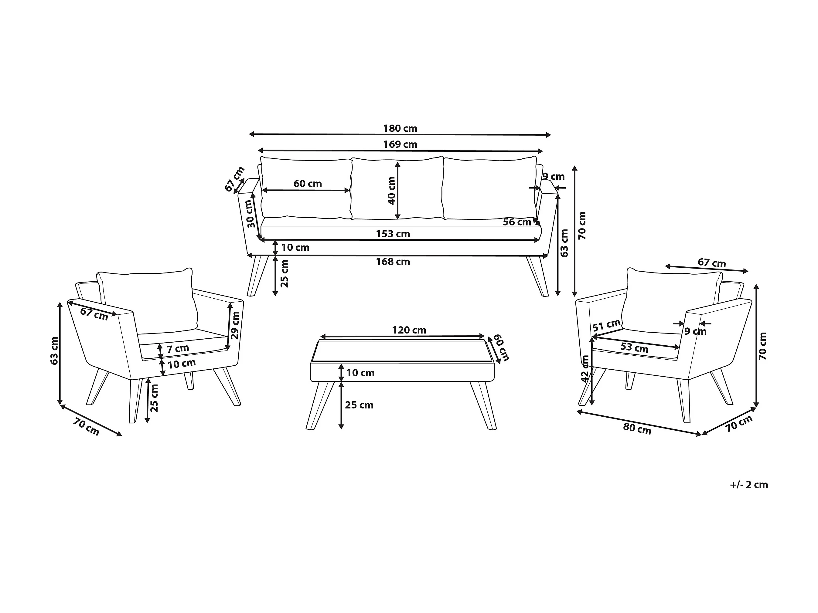 Salon complet de jardin Canapé 2 places et 2 fauteuils