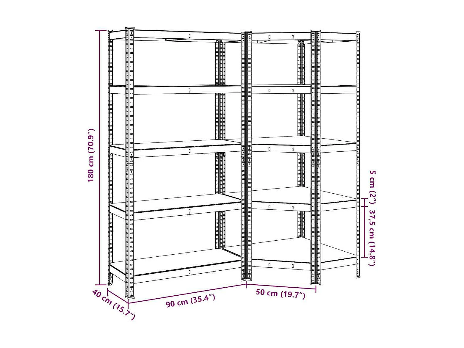 Ensemble d'étagères à 5 niveaux 2 pcs acier bois d'ingénierie
