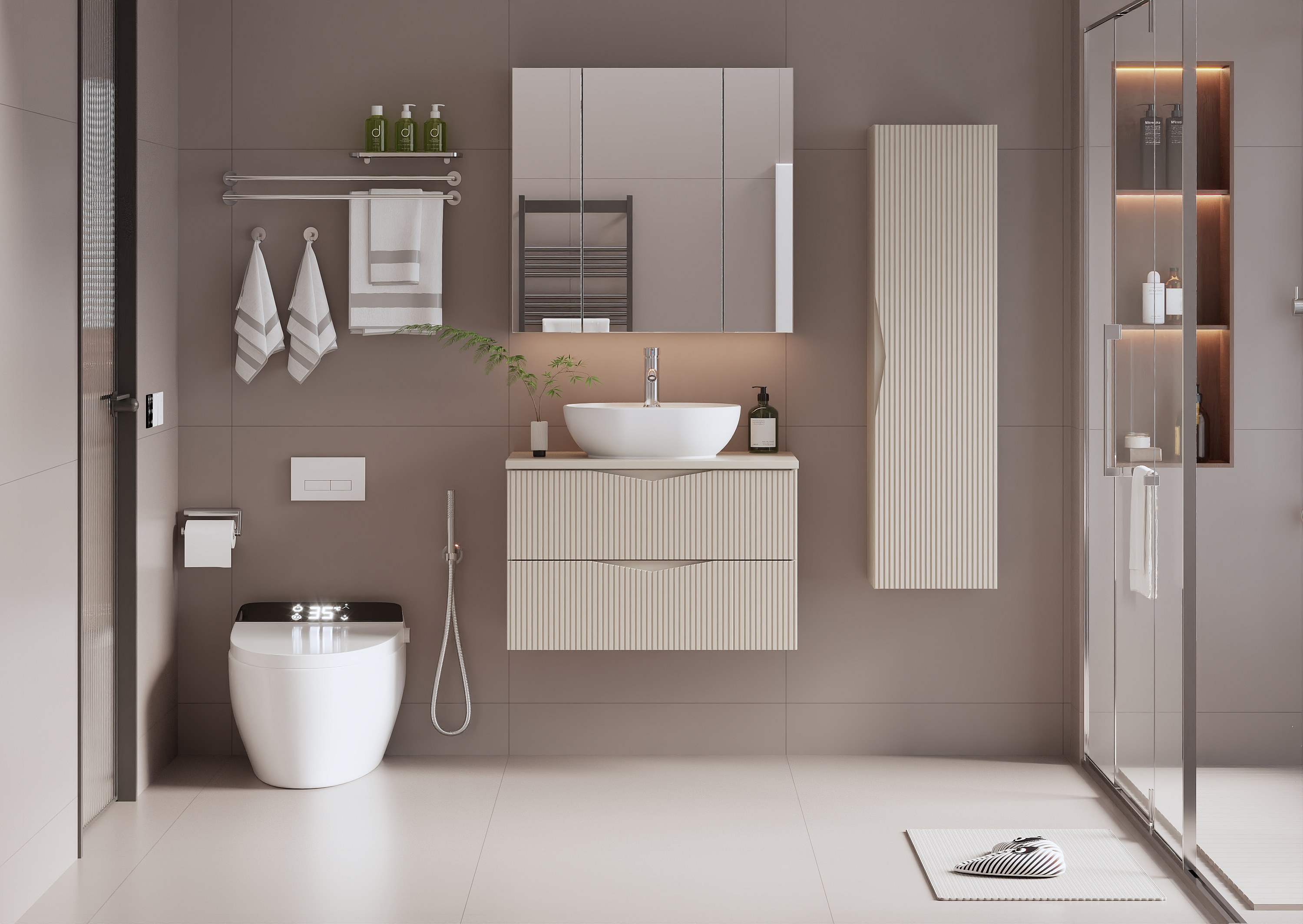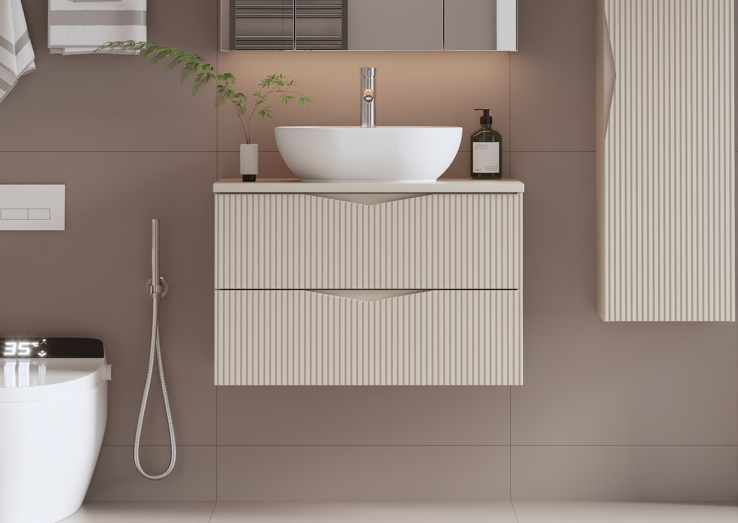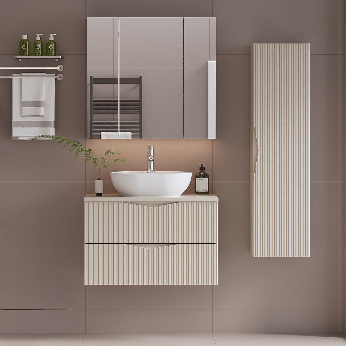 Ensemble meuble simple vasque encastrée 80cm et colonne Tao Cachemire