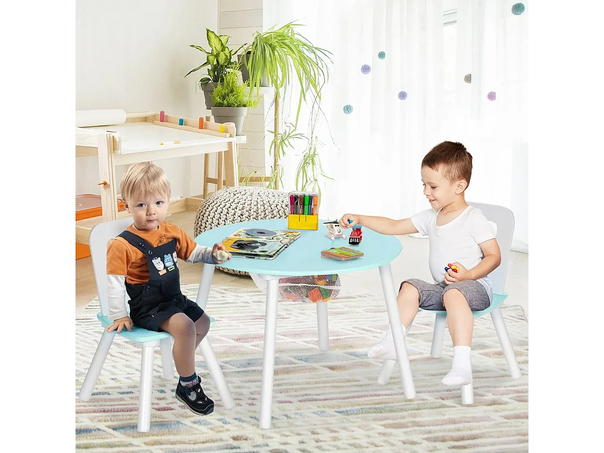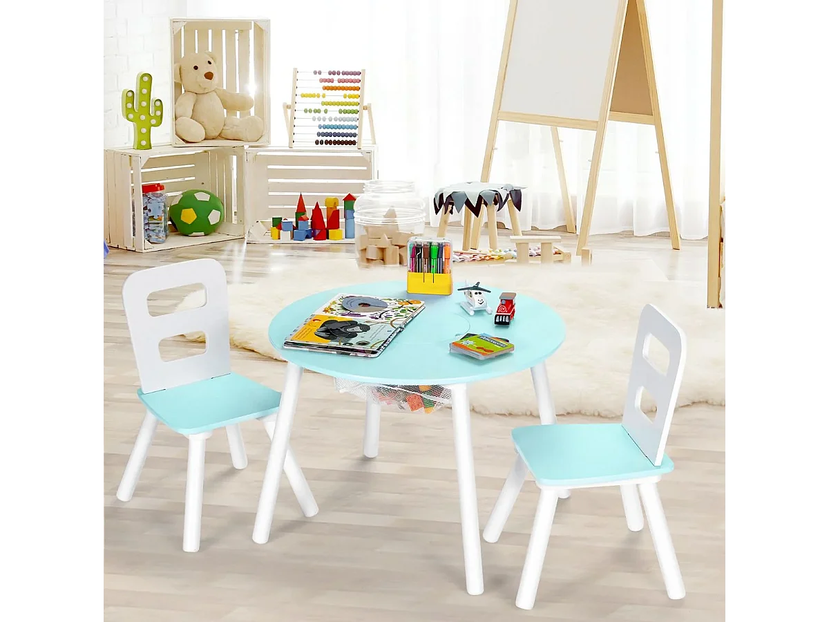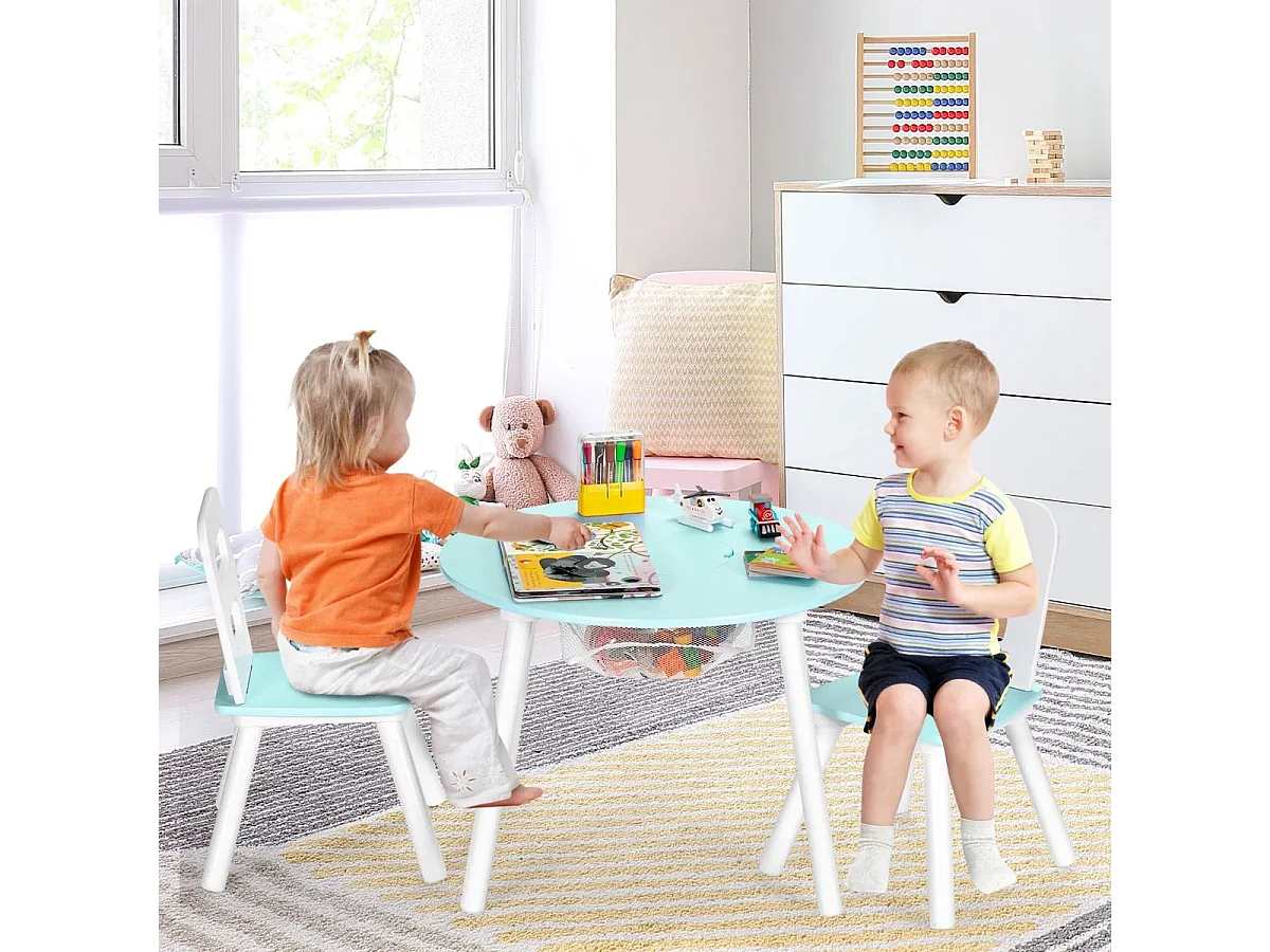 Ensemble Table avec 2 Chaises et Espace de Rangement pour Jouets 3-7 ans Vert
