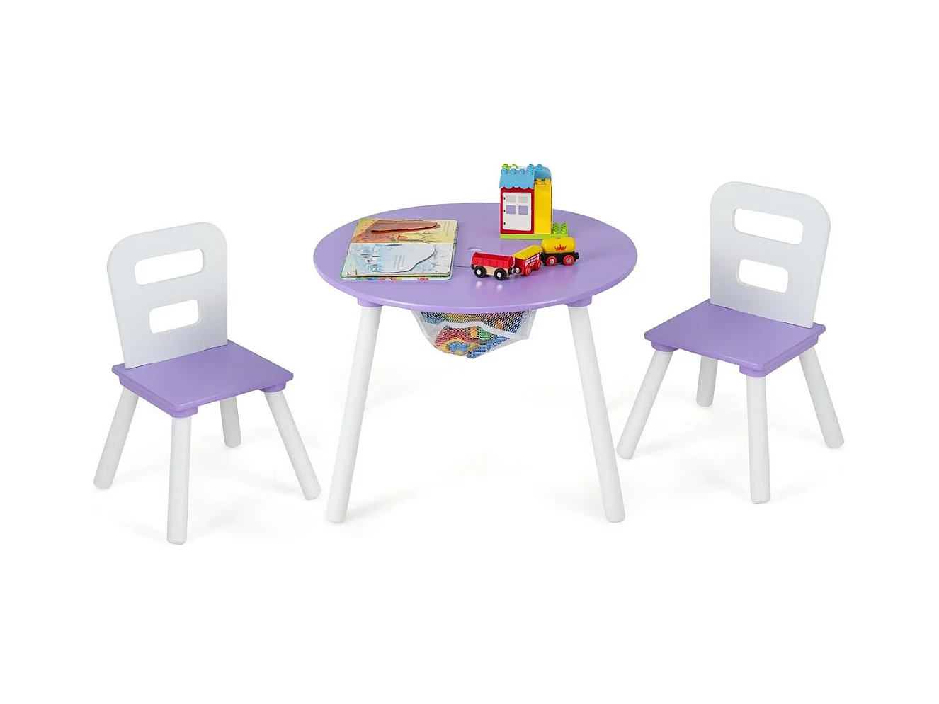 Ensemble Table avec 2 Chaises et Espace de Rangement pour Jouets 3-7 ans Violet