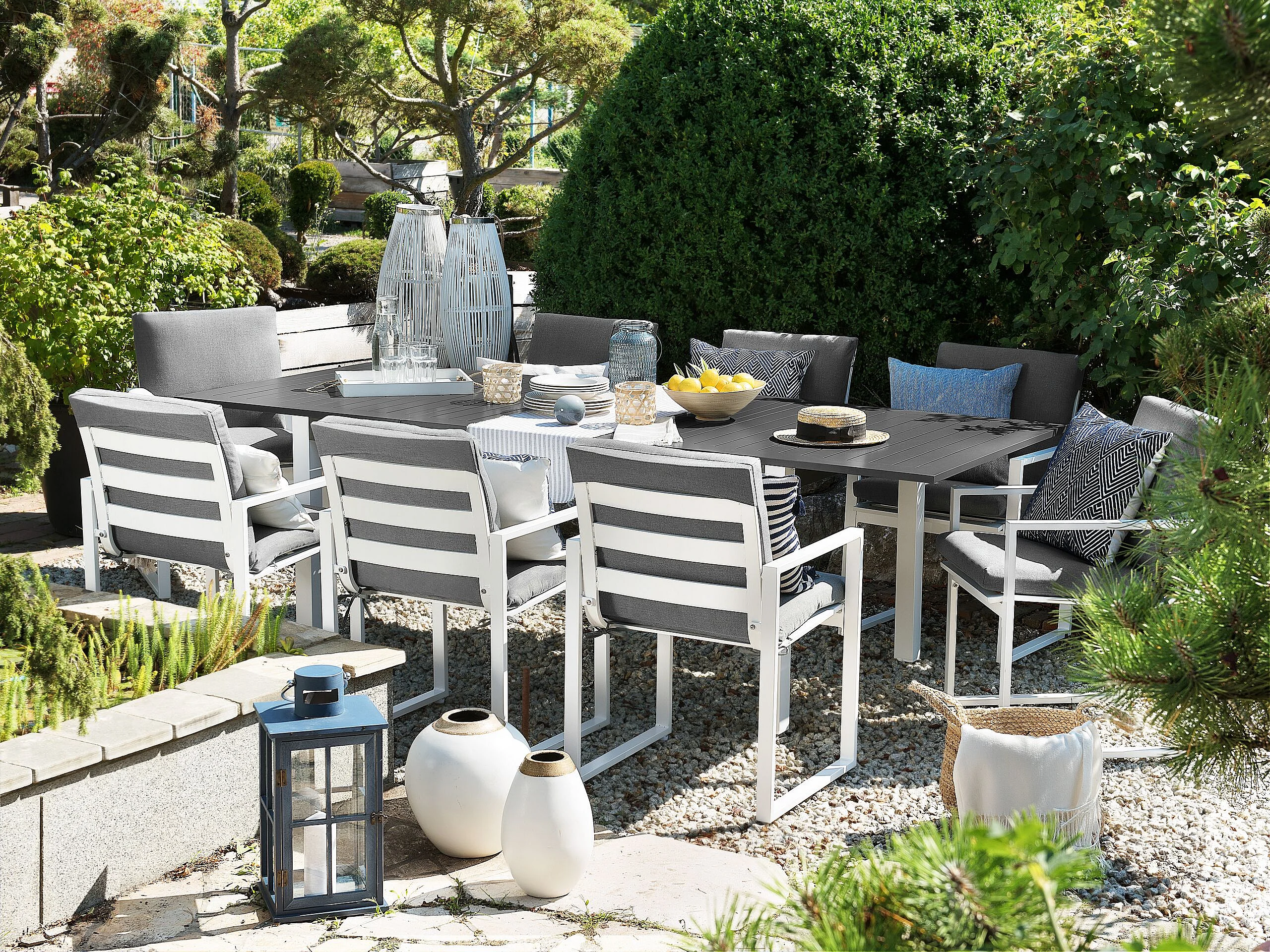 Salle à manger de jardin 8 places PANCOLE avec coussins Métal Gris