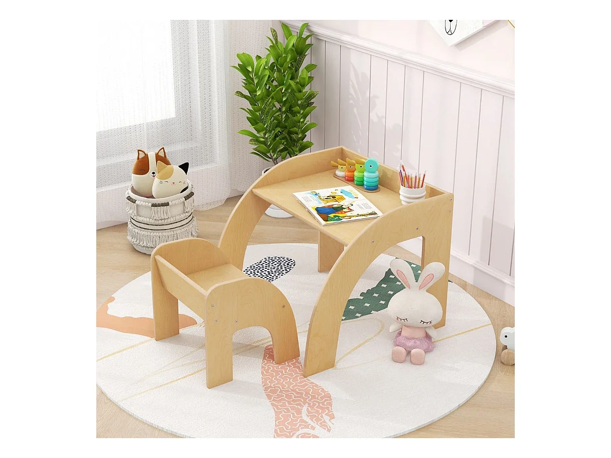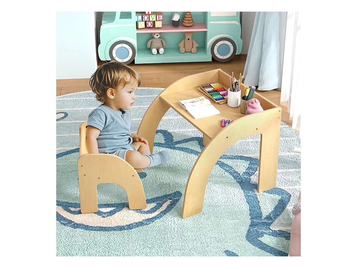 Ensemble Table et Chaise pour Enfants Mignon Ensemble Table et Chaise d'Activité avec Grand Plateau Bords Arrondis Naturel