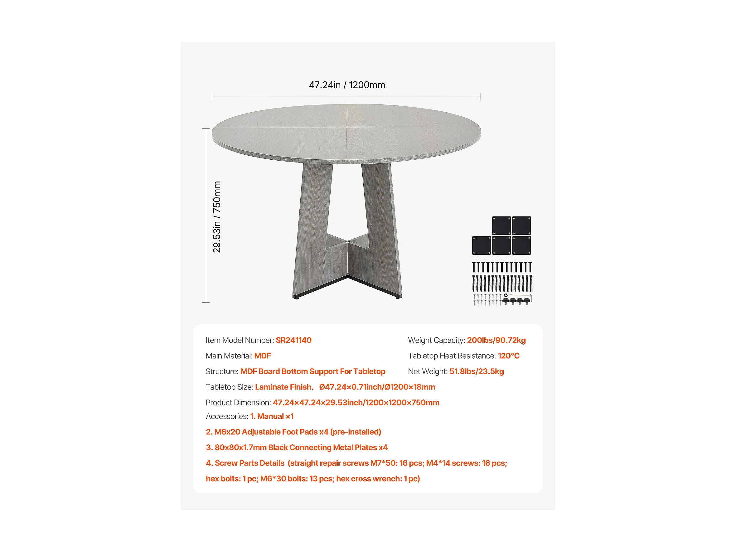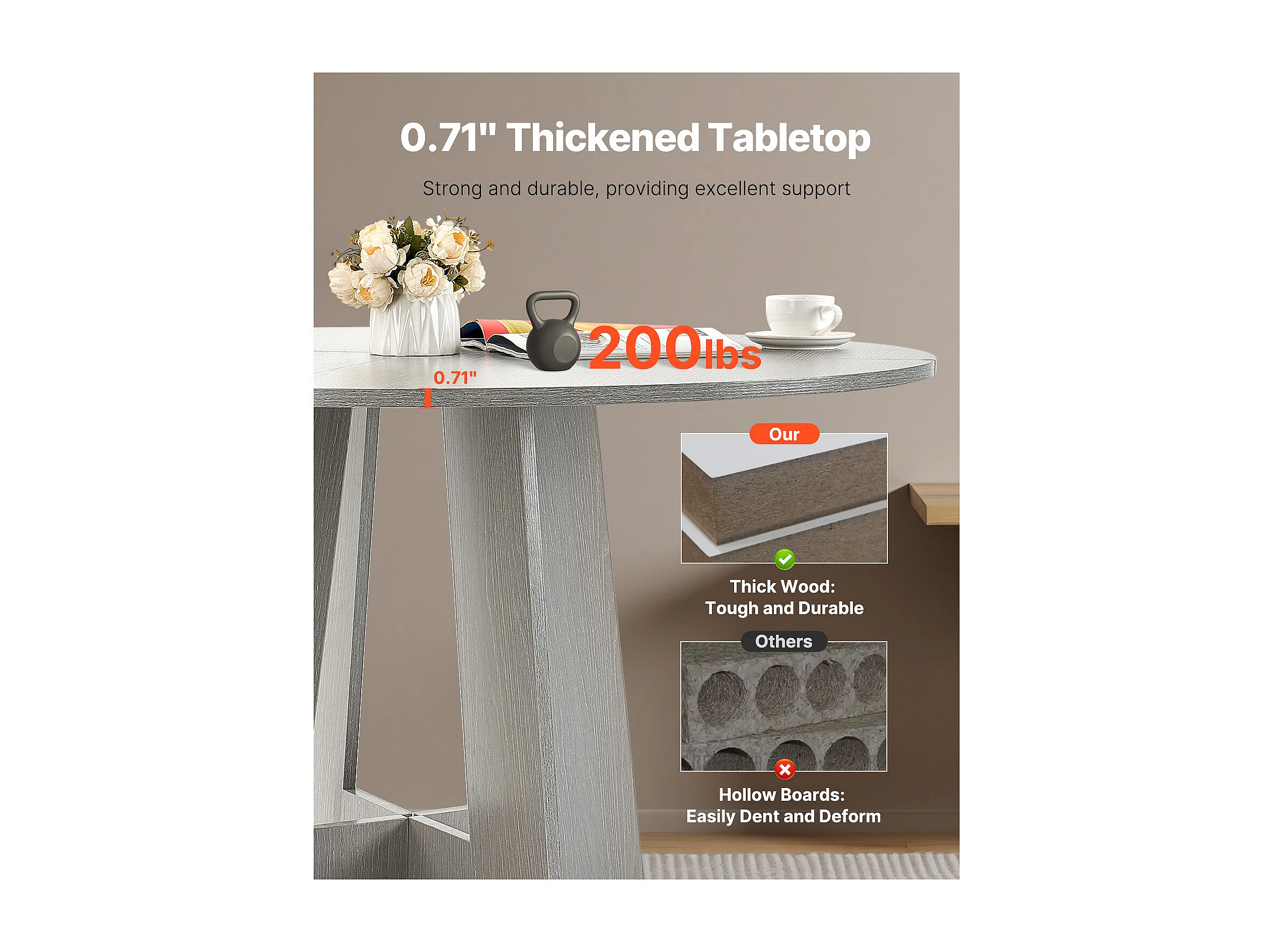 Ensemble Table SucceBuy Table Ronde en Bois de 119 cm pour 2 à 4 Personnes (Table Uniquement), Mobilier Circulaire Rustique avec Pieds en Bois Épais