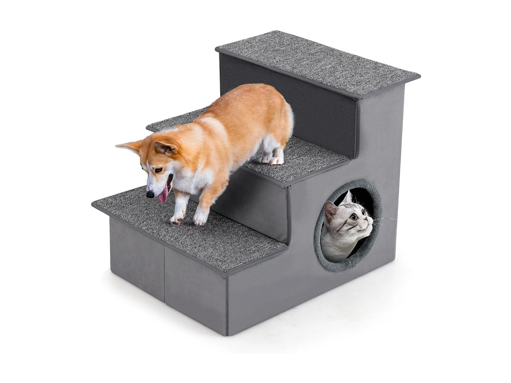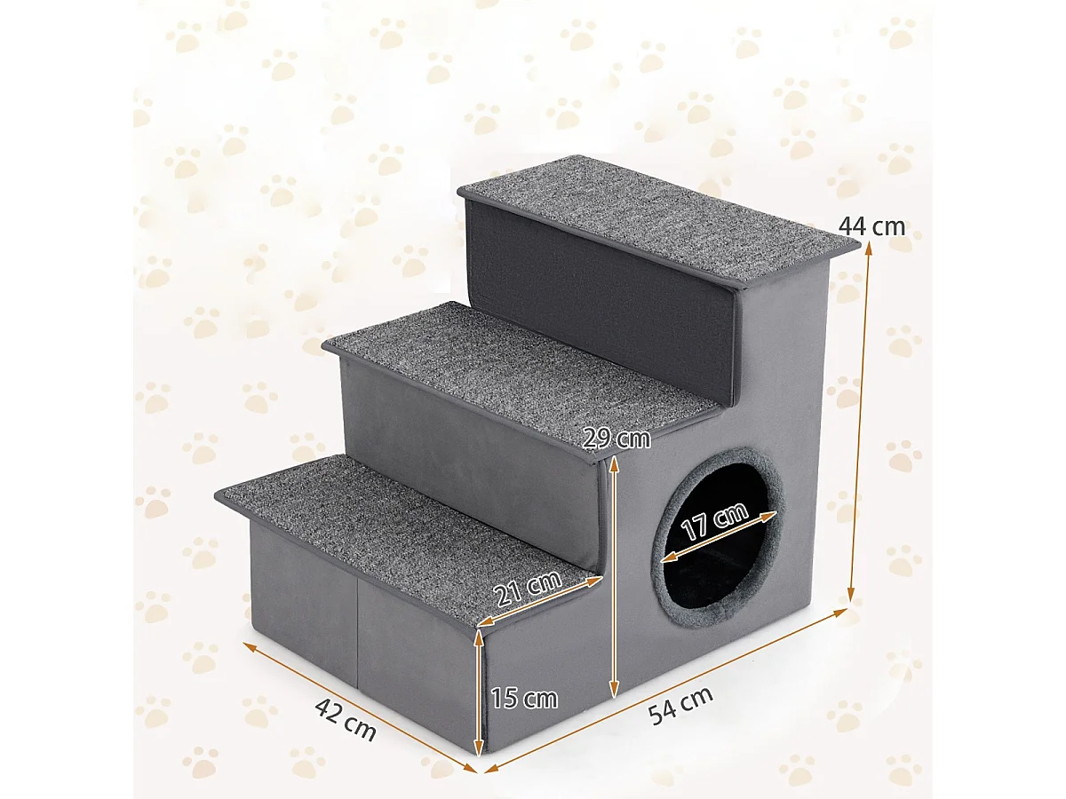 Escalier pour Chien pour Lit Haut Canapé Sofa Rampe Pliable à 3 Étapes avec Condo Fond Antidérapant Échelle de Grimpe Gris