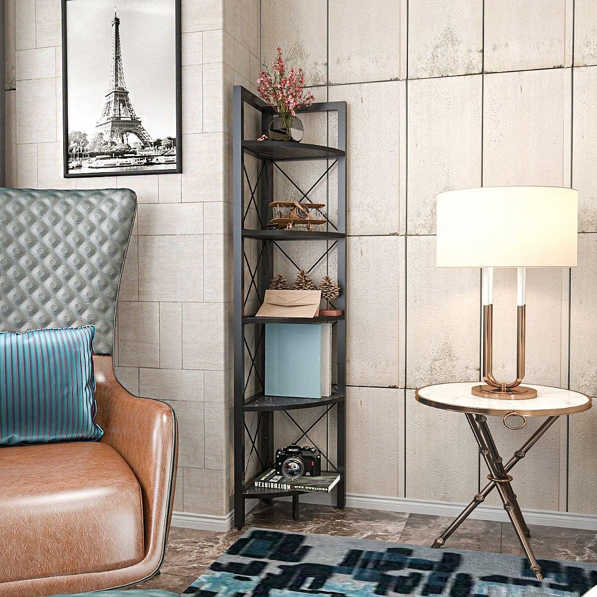 Etagère d'angle 5 tablettes noir H160 cm - Remo