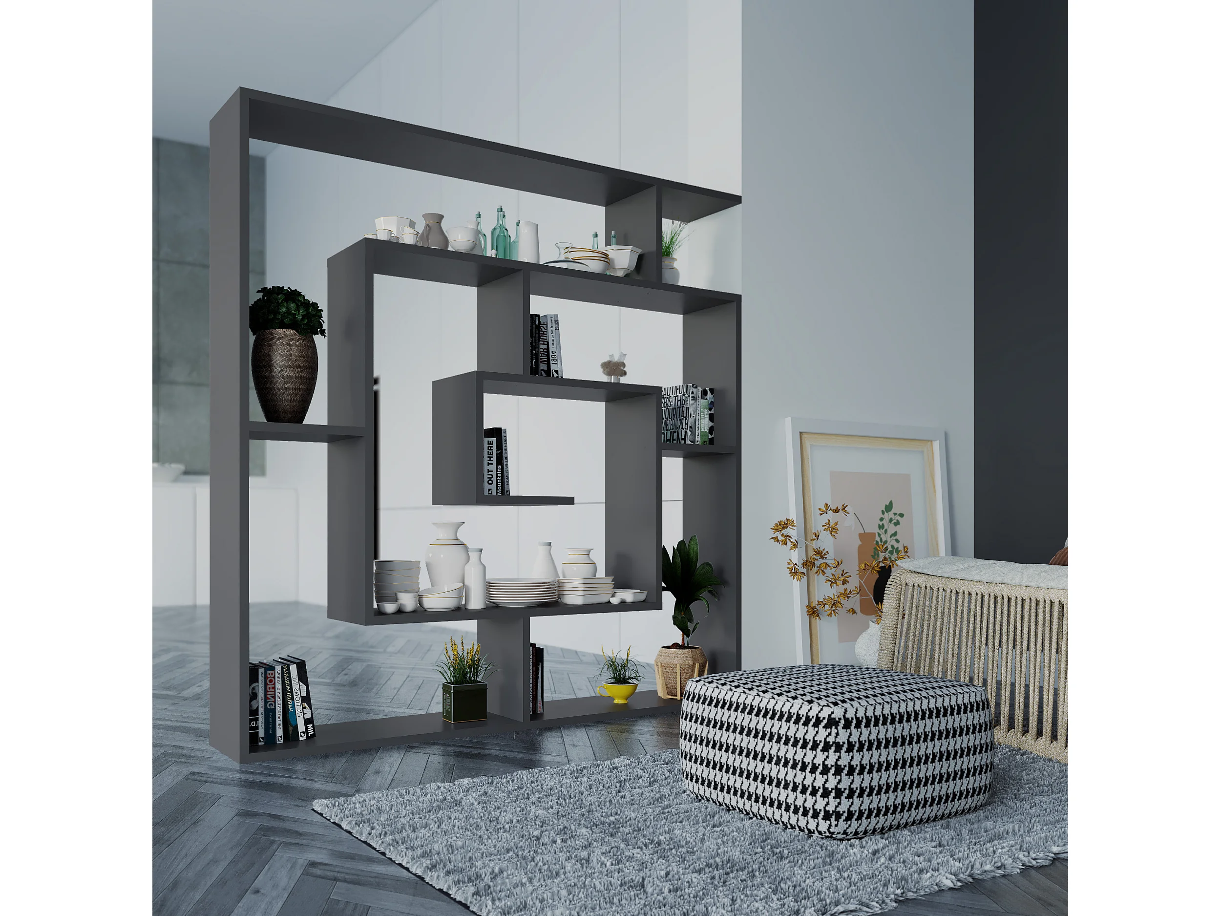 Etagère LABIRENT - anthracite, 125x129x22