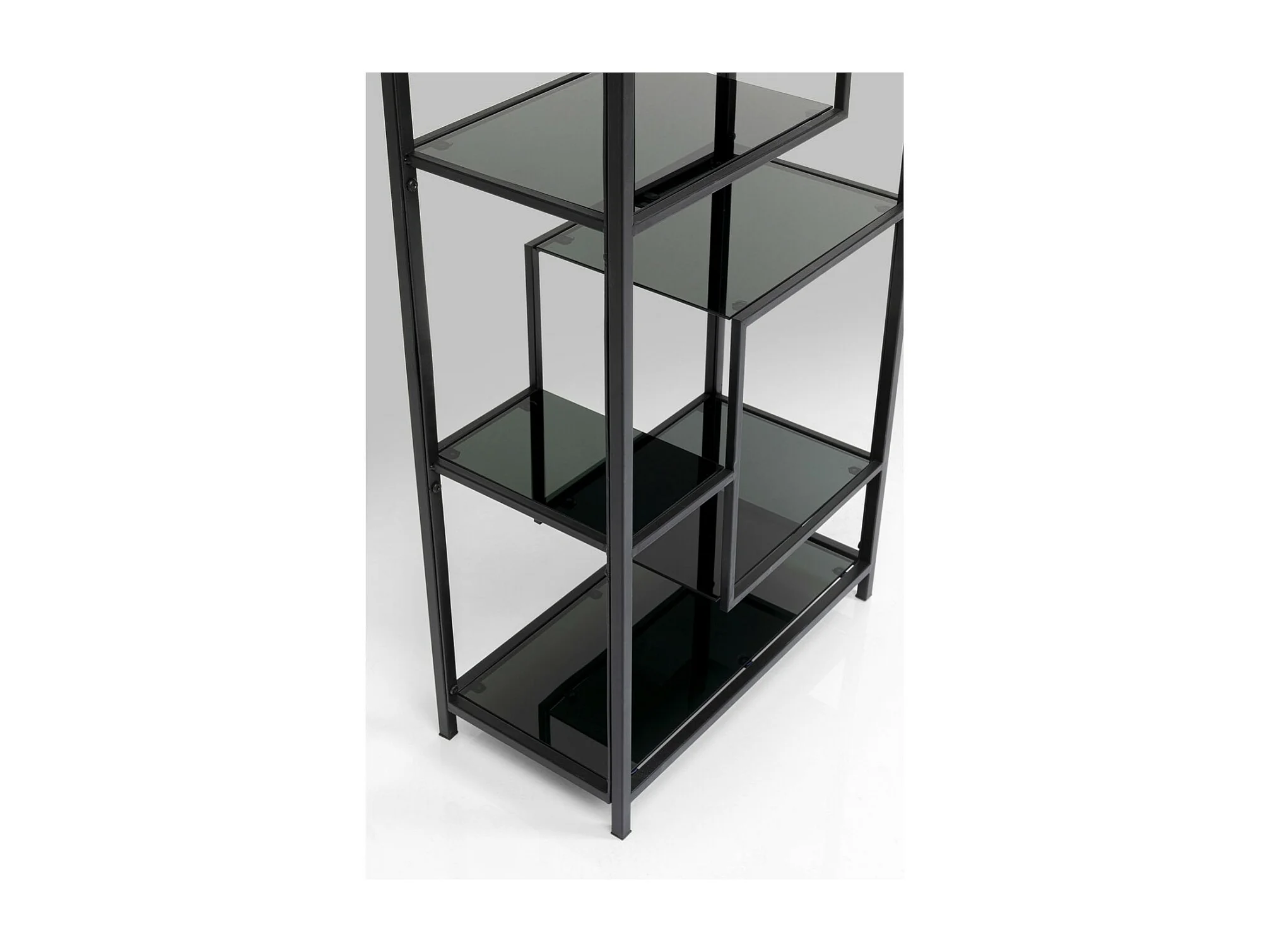 Bibliothèque Étagère Échelle en Bois à 6 niveaux avec 2 Portes 70 x 23 x 183 cm Style Moderne Forme en S Noir