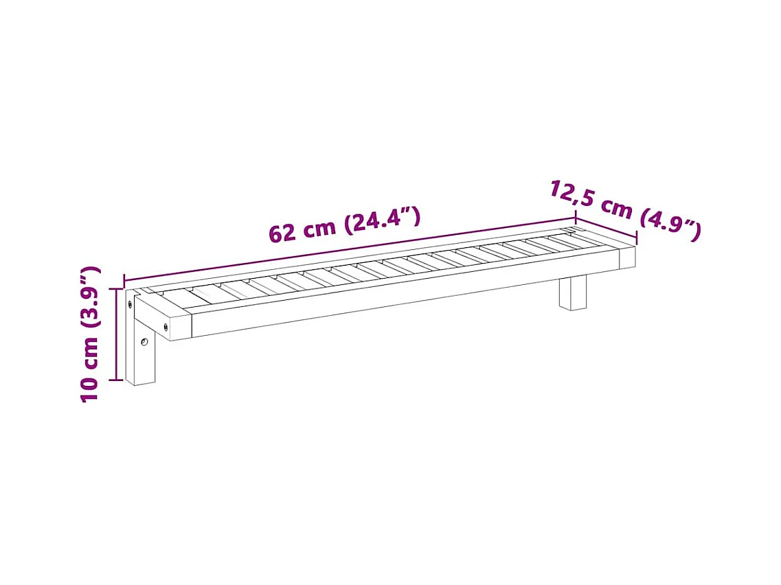 Etagère murale 62x10x12,5 cm en bois massif noyer