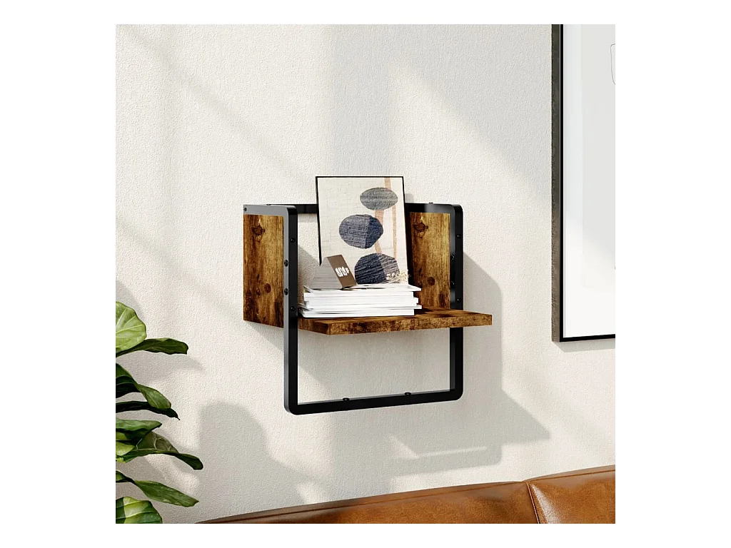 Étagère murale avec barre chêne fumé 30x25x30 cm