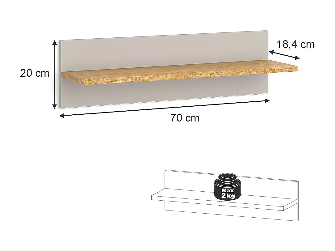 Étagère murale chêne cachemire 70x18.4x20 malia