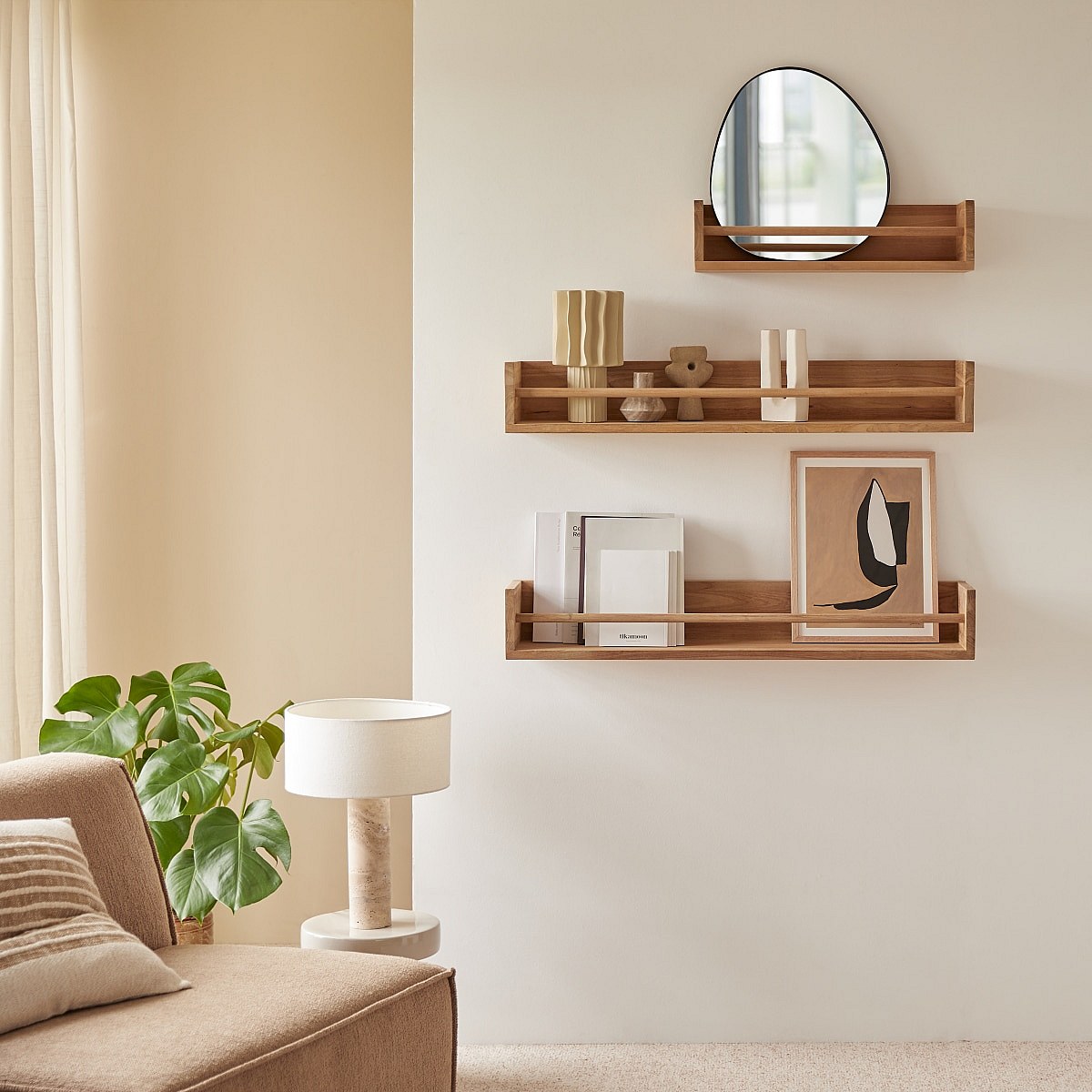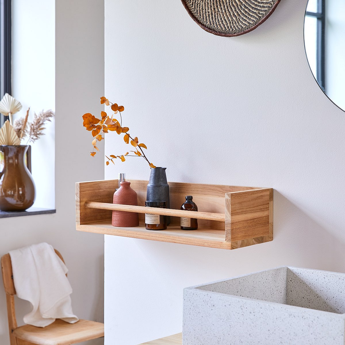 Etagère murale de Salle de Bain en bois d'acacia massif Lila 60