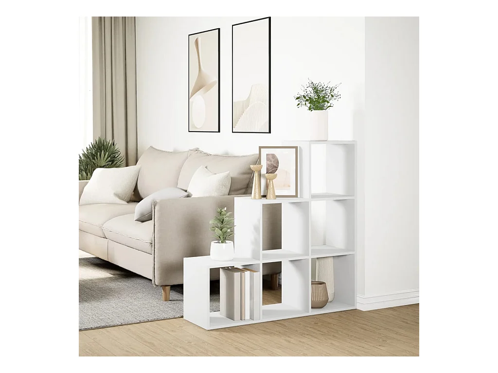 Bibliothèque séparateur de pièce à 3 niveaux Blanc 99 x 29 x 99 cm Bois d'ingénierie