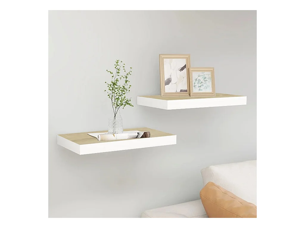 Étagères flottantes 2 pcs Chêne et blanc 40x23x3,8 cm MDF