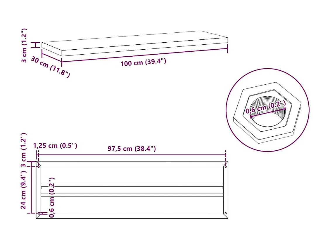 Étagères murales 2 pcs 100x30x3 cm noir acier inoxydable