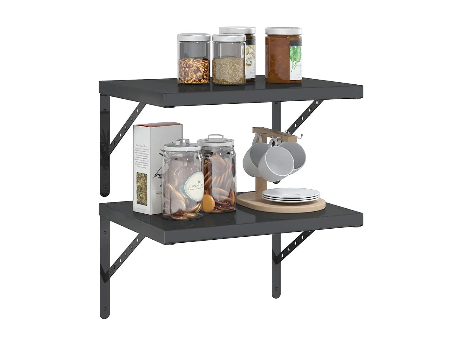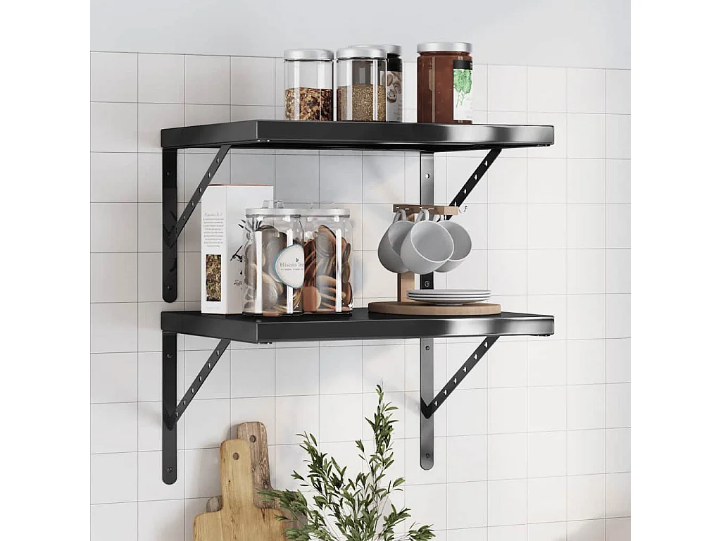Étagères murales 2 pcs 50x40 cm noir acier inoxydable
