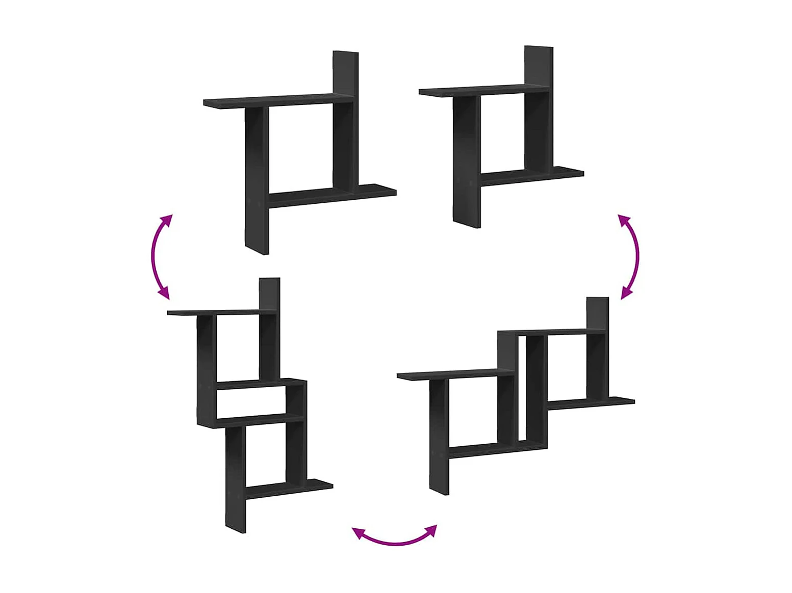 Étagères murales 2 pcs noir 38x12x38 cm bois d'ingénierie
