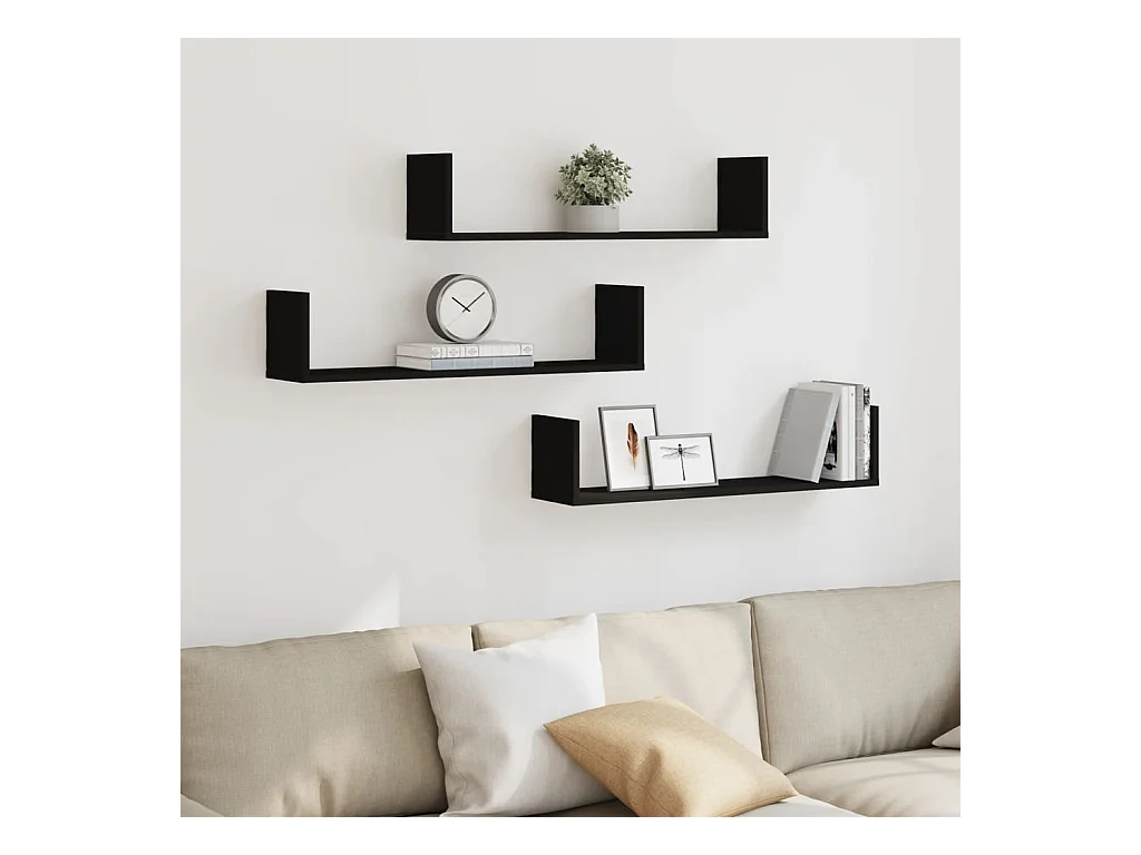 Étagères murales 3 pcs noir 80x18x18 cm bois d'ingénierie