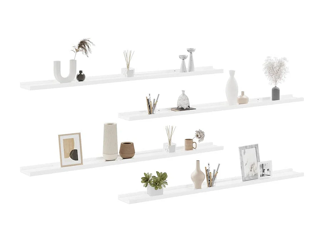 Étagères murales 4 pcs Blanc brillant 115x9x3 cm