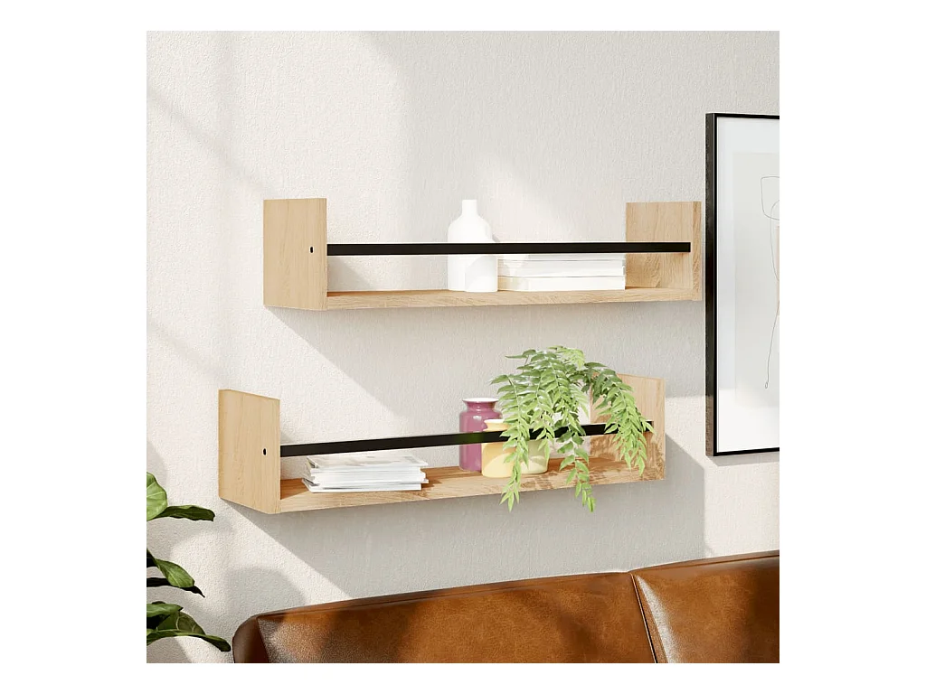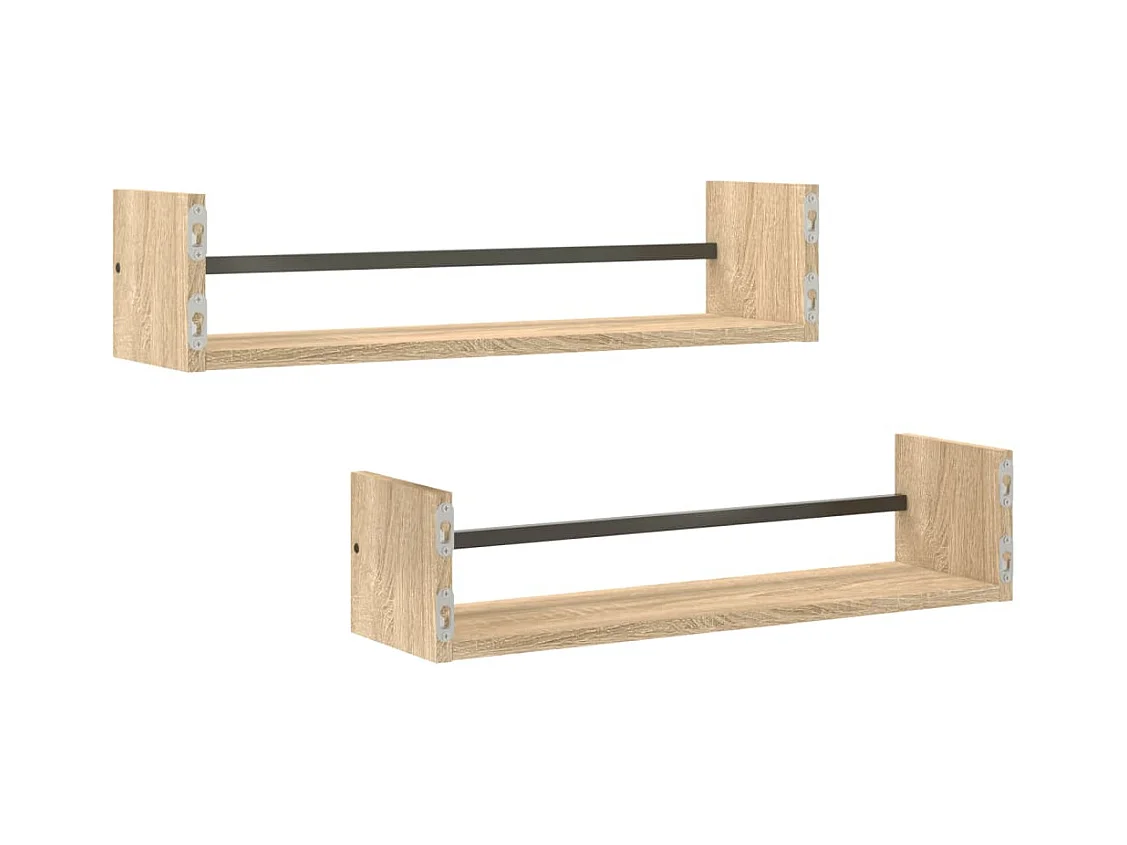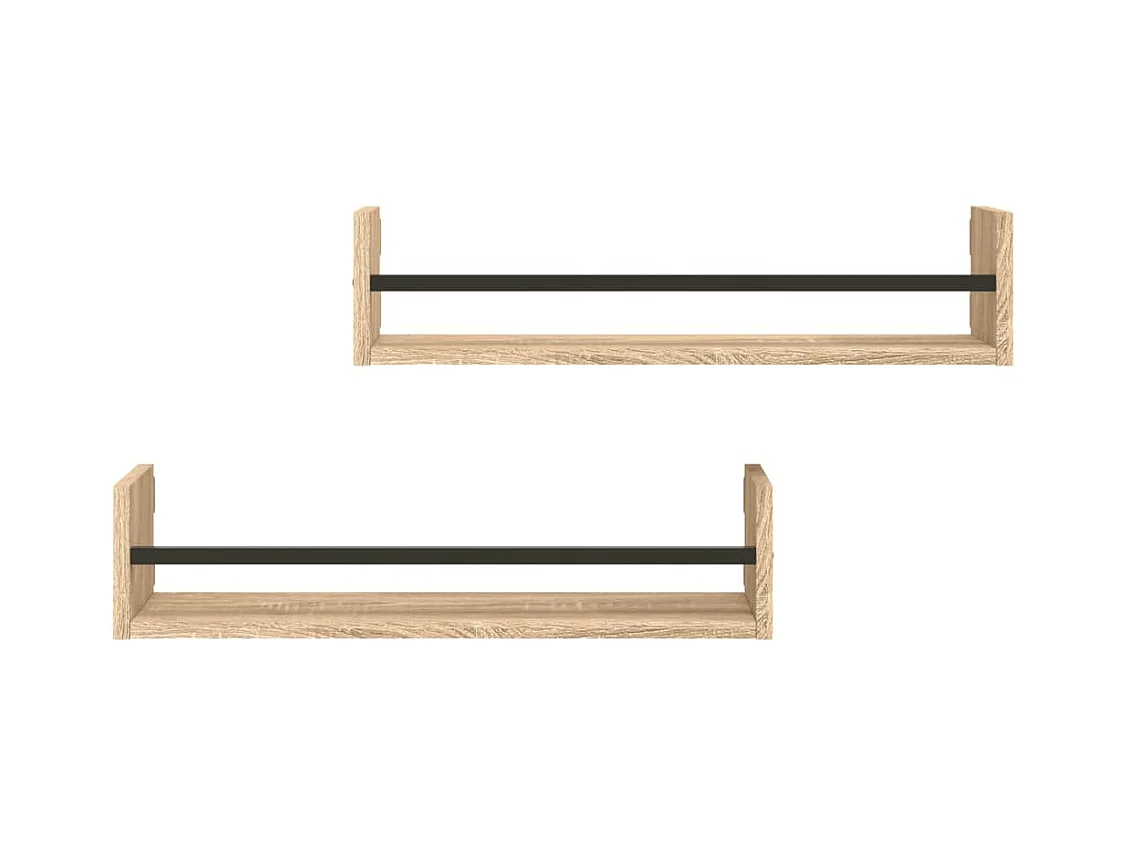 Étagères murales avec barres 2 pcs chêne sonoma 60x16x14 cm