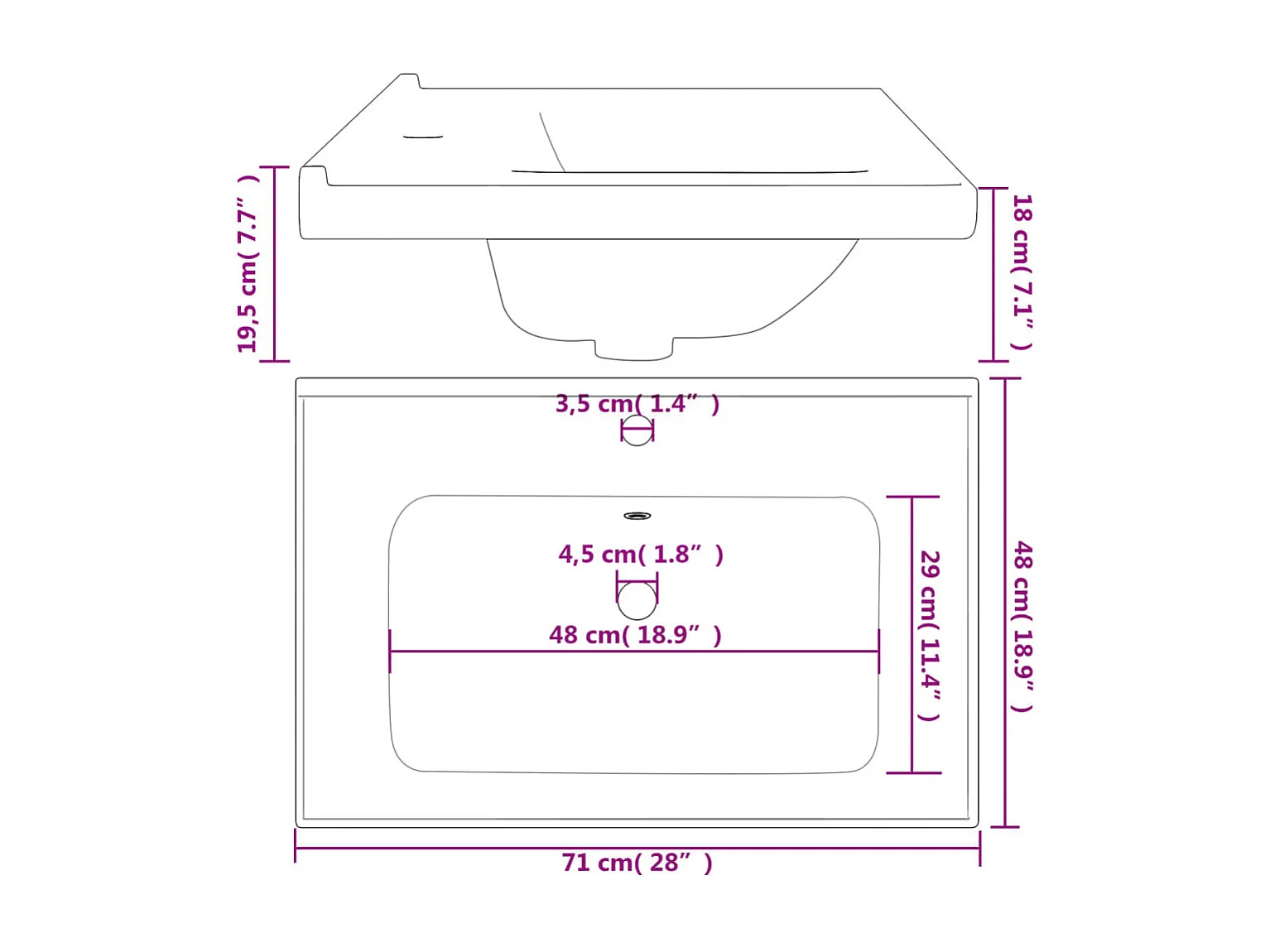 Évier salle de bain blanc 71x48x19,5 cm rectangulaire céramique